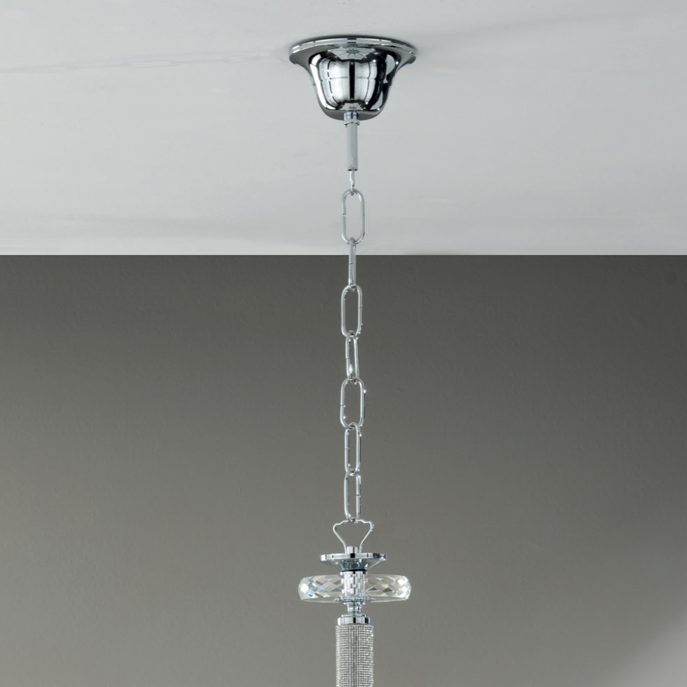 Abgerundet wird das Design durch die Ringdetails mit Tropfen aus optischem Kristall und die verchromten Metalloberflächen , die das Accessoire in die Lage versetzen, luxuriöse und bedeutungsvolle Atmosphären zu schaffen.
