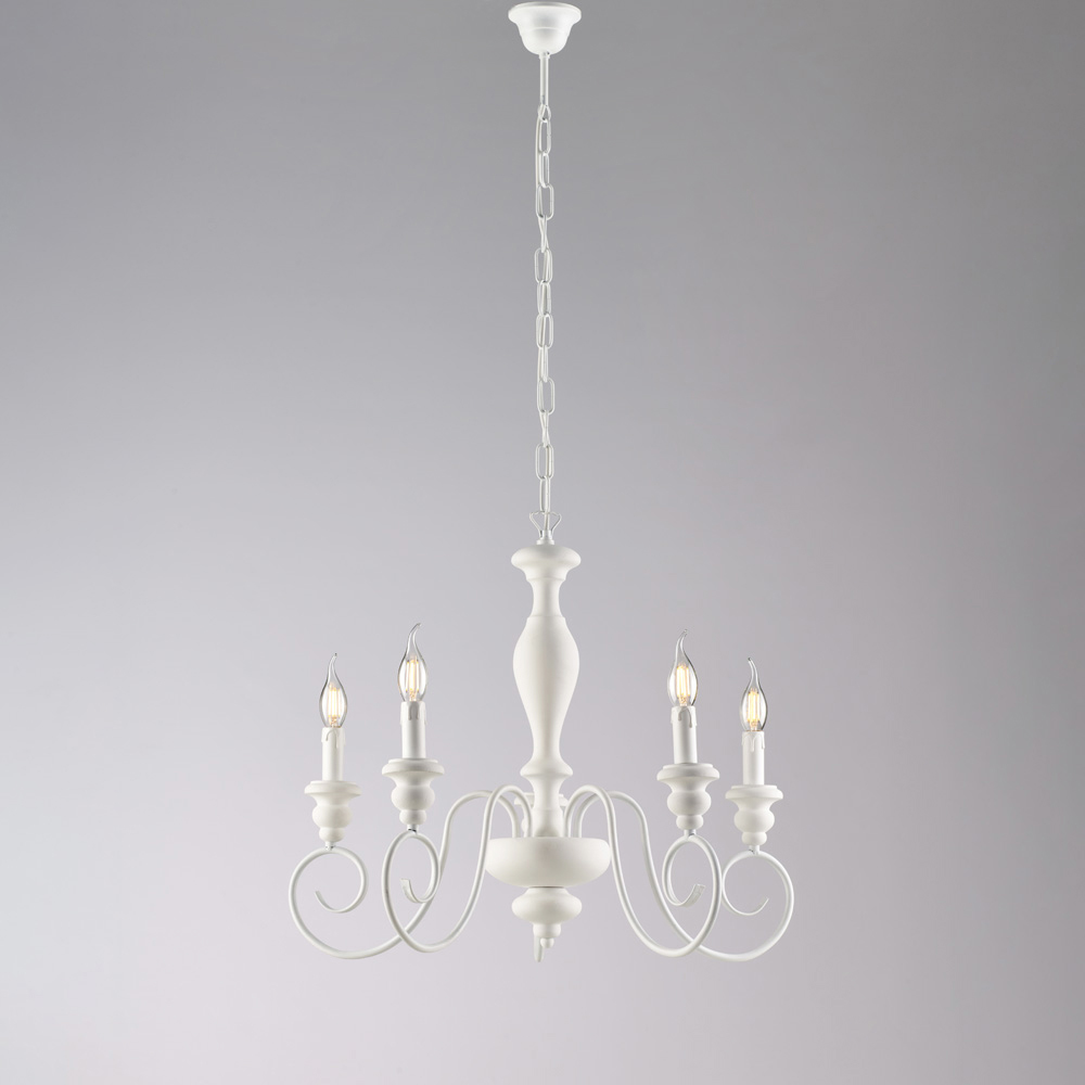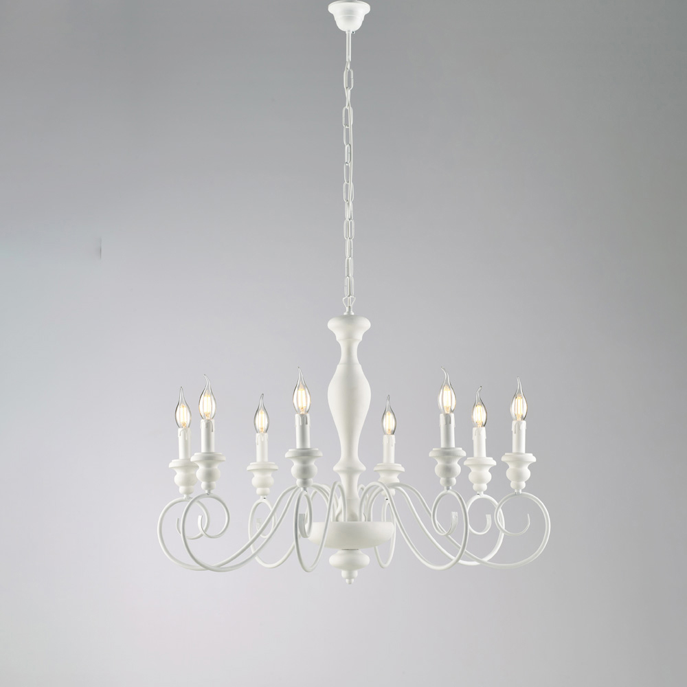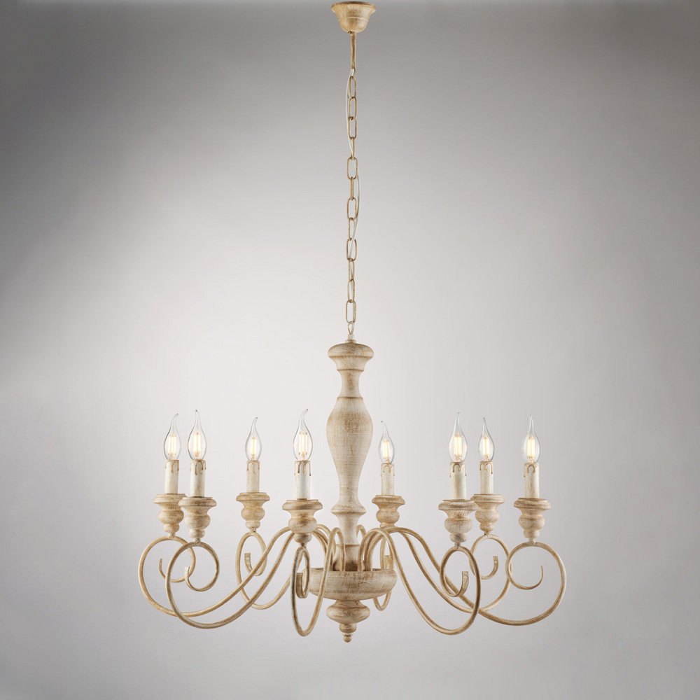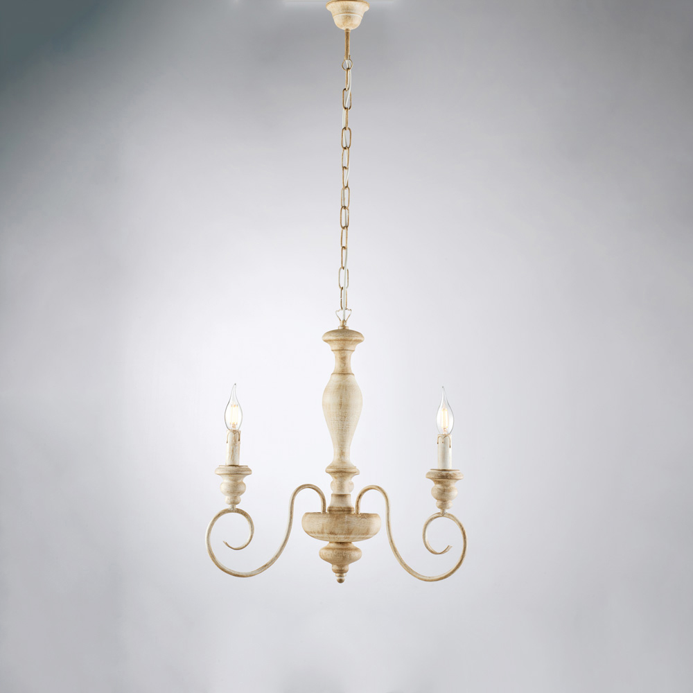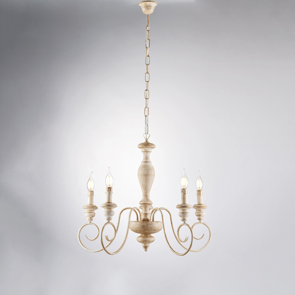 Klassischer, handgefertigter Kronleuchter aus Holz und Eisen – Shabby White oder Weiß/Taubengrau | Hergestellt in Italien