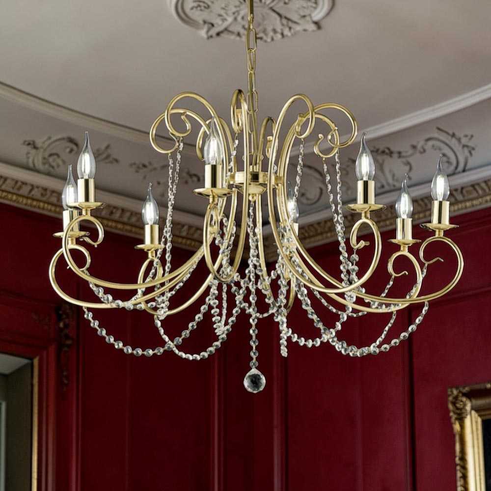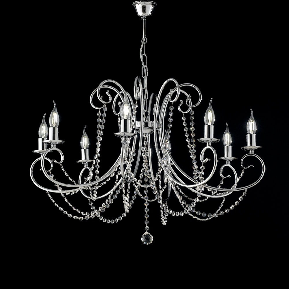 Dieser klassische Kronleuchter aus Eisen ist eine Ikone zeitloser Eleganz und besticht auf den ersten Blick durch seine geschwungenen Linien , die fein gearbeiteten Arme und die Kaskaden dekorativer Kristalle , die das Licht mit raffinierter Brillanz reflektieren.