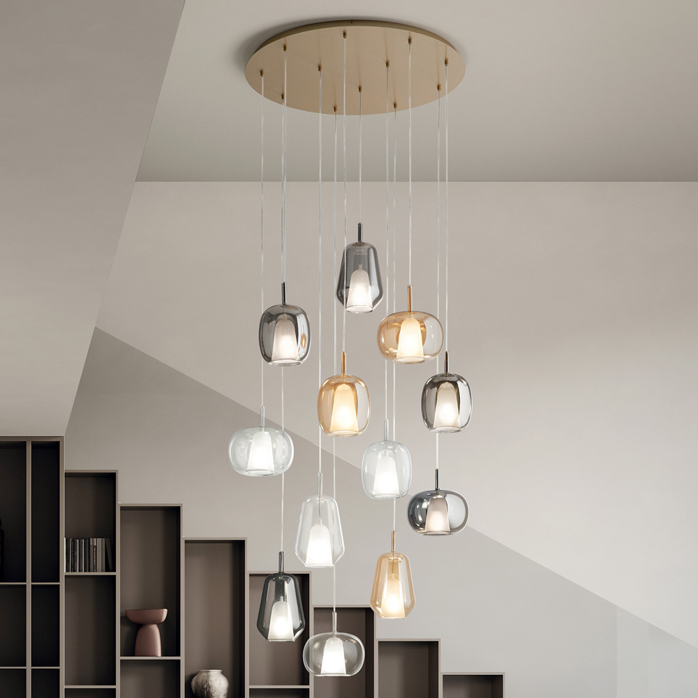 Doppelschichtiger Kronleuchter aus mundgeblasenem Glas