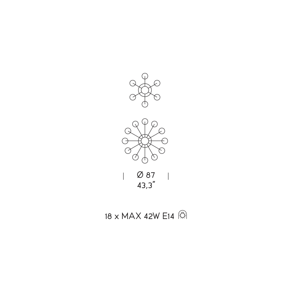Leuchtmittel (nicht enthalten) : 18 x MAX 42W E14