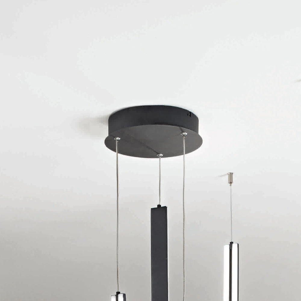 Komplett in Italien hergestellterKronleuchter aus schwarz lackiertem Metall mit abnehmbarem Einsatz aus Rauchglas mit dimmbarem LED- Licht und längenverstellbaren Kabeln . Ziel dieses Produkts ist es, die Tradition durch einen zeitgenössischen Ansatz aufzuwerten, bei dem Stil, Klasse und Innovation zu neuen Designformeln verschmelzen, um jede Umgebung mit Geschmack und Charakter einzurichten und zu beleuchten. Stärken sind die Besonderheit der Formen , die Qualität der Materialien und die Einzigartigkeit der Lichtquelle .