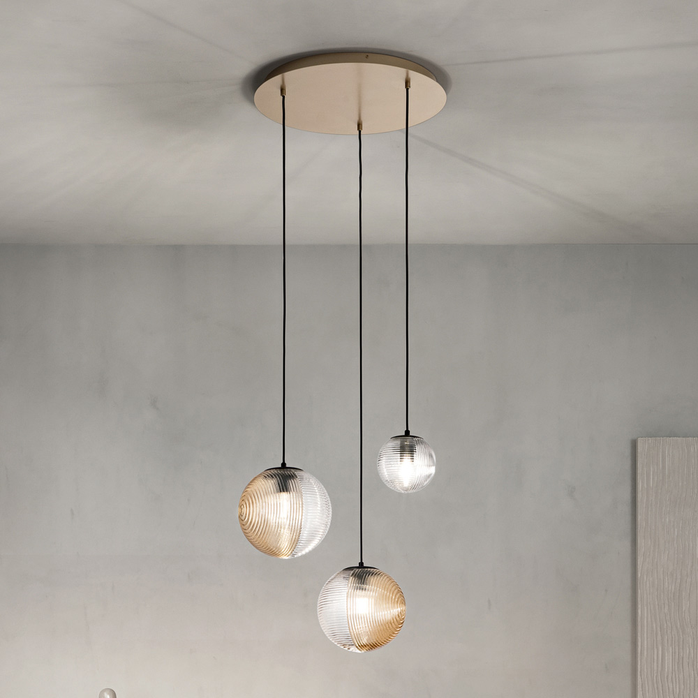 Kronleuchter mit 3 Lichtern aus mundgeblasenem Glas in Form einer Kugel Made in Italy - Prilla