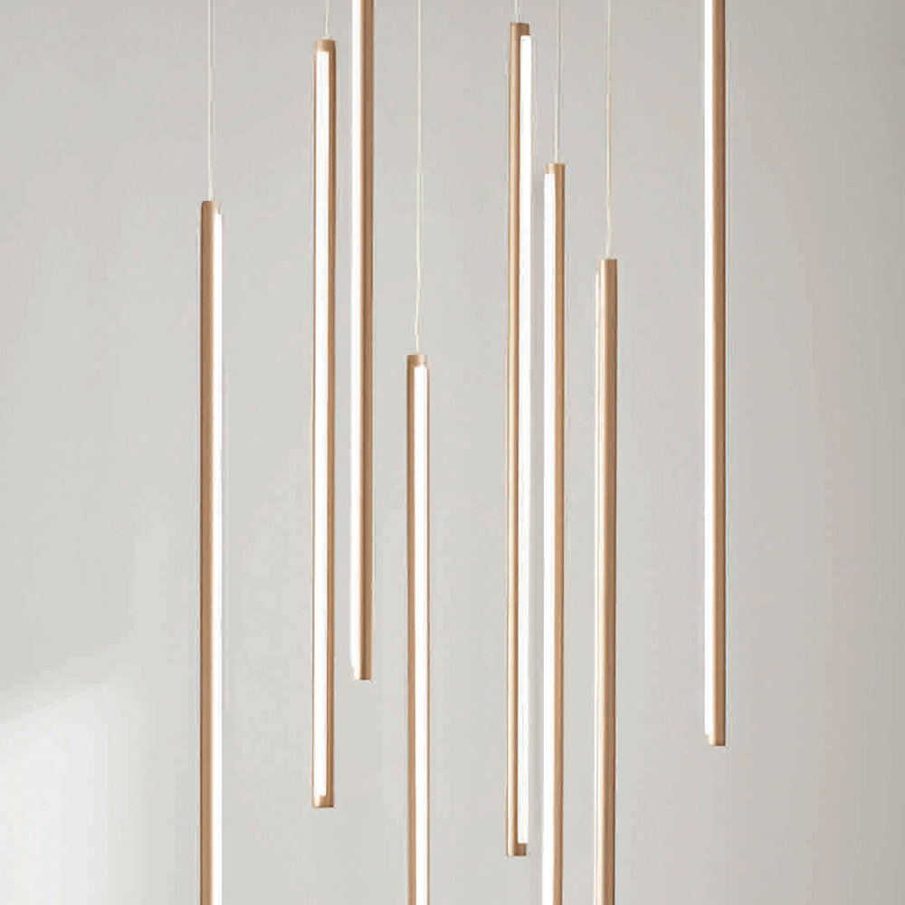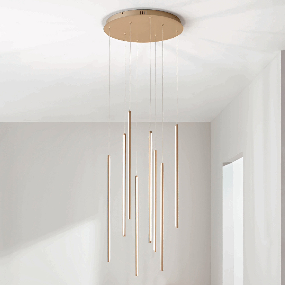Komplett in Italien hergestellterKronleuchter aus goldfarben lackiertem Metall mit dimmbarem LED-Licht und längenverstellbaren Kabeln . Ziel dieses Produkts ist es, die Tradition durch einen zeitgenössischen Ansatz aufzuwerten, bei dem Stil, Klasse und Innovation zu neuen Designformeln verschmelzen, um jede Umgebung mit Geschmack und Charakter einzurichten und zu beleuchten. Stärken sind die Besonderheit der Formen , die Qualität der Materialien und die Einzigartigkeit der Lichtquelle .