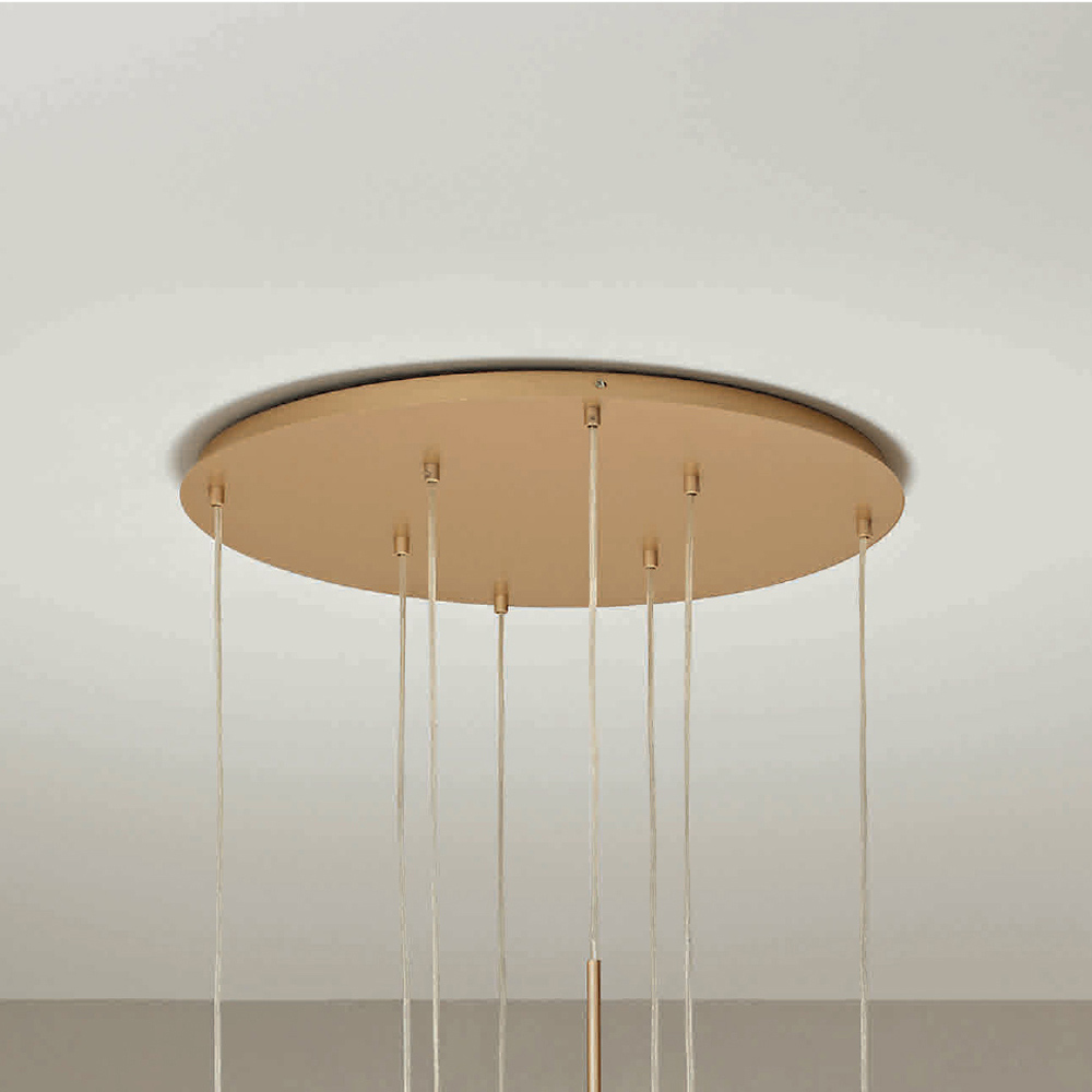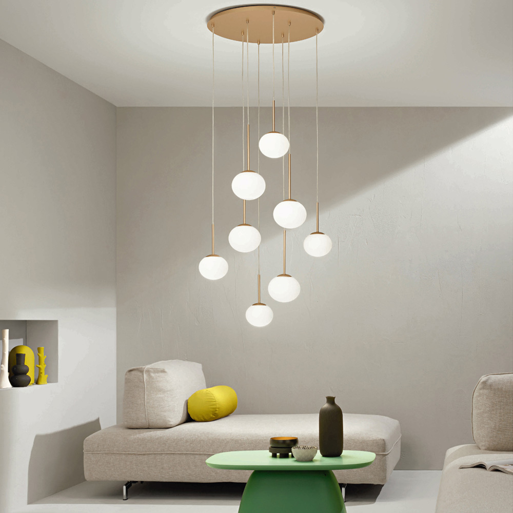 Komplett in Italien hergestellterKronleuchter aus lackiertem Metall und mundgeblasenem Glas mit Goldfinish, mit LED-Licht und längenverstellbaren Kabeln . Ziel dieses Produkts ist es, die Tradition durch einen zeitgenössischen Ansatz aufzuwerten, bei dem Stil, Klasse und Innovation zu neuen Designformeln verschmelzen, um jede Umgebung mit Geschmack und Charakter einzurichten und zu beleuchten. Stärken sind die Besonderheit der Formen , die Qualität der Materialien und die Einzigartigkeit der Lichtquelle .