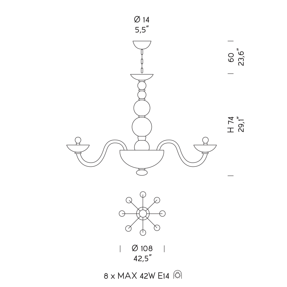 Verfügbare Ausführungen: Leuchtmittel (nicht enthalten) : 8 x MAX 42W E14