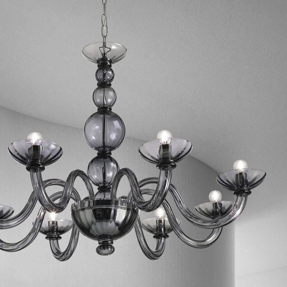Handgefertigter Kronleuchter aus venezianischem Glas und verchromtem Metall Made in Italy.