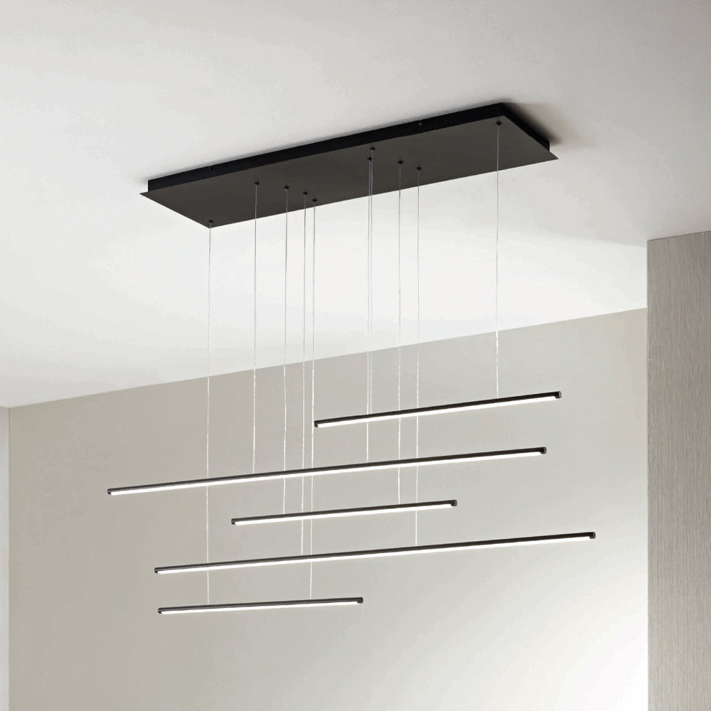 Komplett in Italien hergestellterKronleuchter aus schwarz lackiertem Metall mit dimmbarem LED-Licht und längenverstellbaren Kabeln . Ziel dieses Produkts ist es, die Tradition durch einen zeitgenössischen Ansatz aufzuwerten, bei dem Stil, Klasse und Innovation zu neuen Designformeln verschmelzen, um jede Umgebung mit Geschmack und Charakter einzurichten und zu beleuchten. Stärken sind die Besonderheit der Formen , die Qualität der Materialien und die Einzigartigkeit der Lichtquelle .