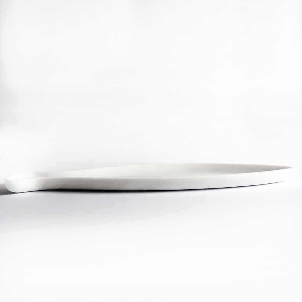 Elegantes und exklusiv geformtes Küchentablett,handgefertigt in Italien aus weißem Carrara-Marmor . Eine Idee von Klasse mit einer originellen Form , die jeden Esstisch auf raffinierte und raffinierte Weise bereichert. Ideal zum Servieren aller Gerichte beim Mittag- und Abendessen mit Freunden, eignet sich seine Form auch perfekt als praktischer Taschenleerer am Eingang oder als einfaches Dekorationselement , das jeden Raum im Haus mit Persönlichkeit bereichert.