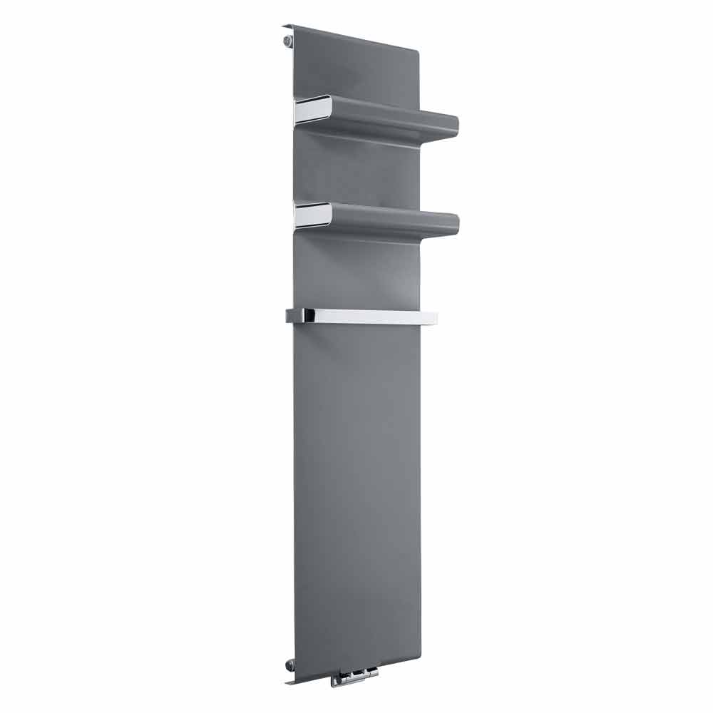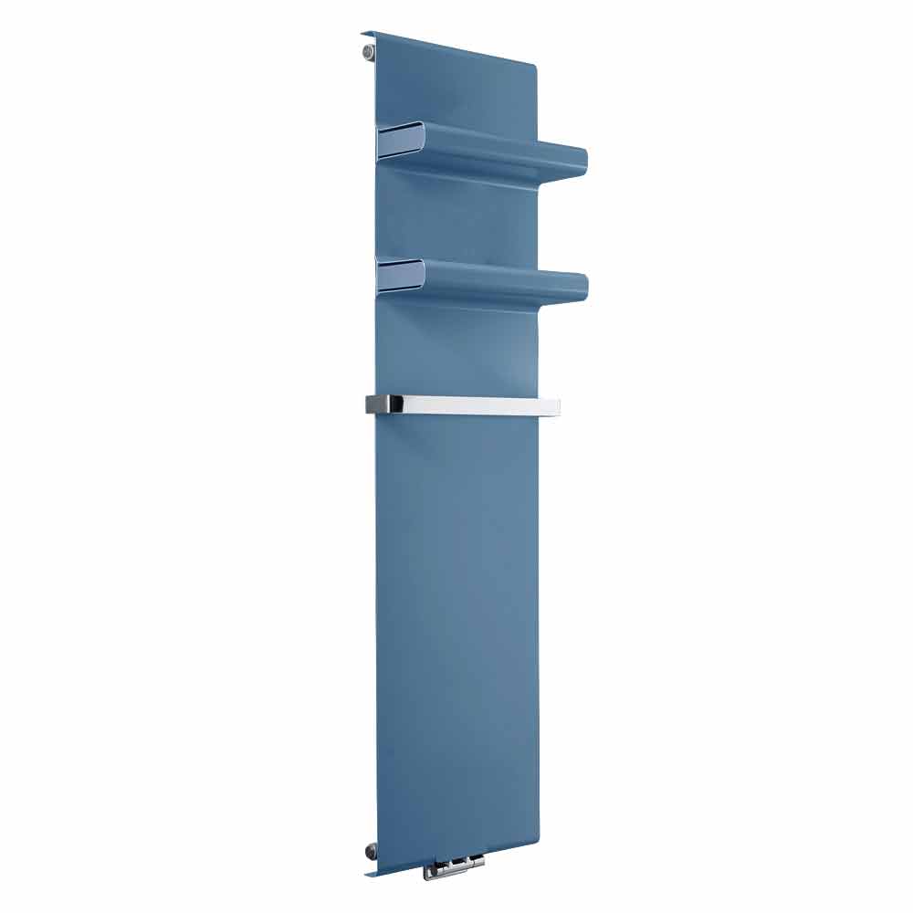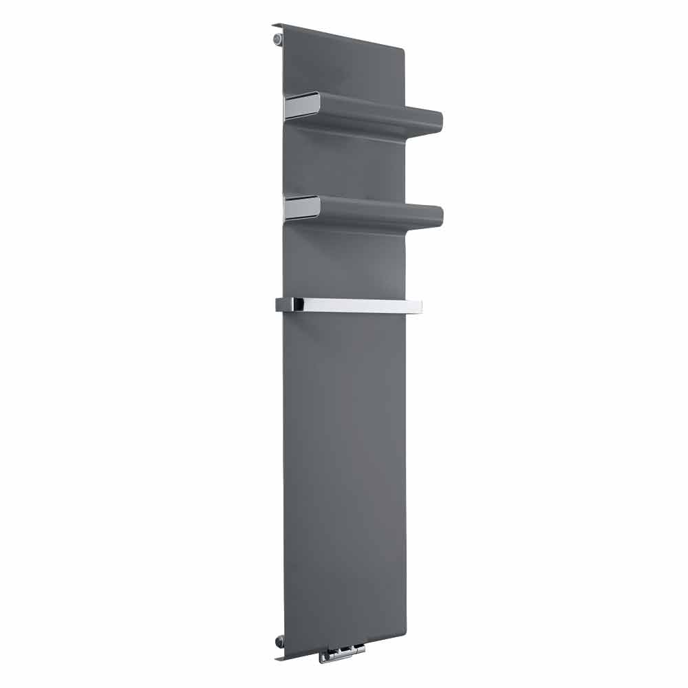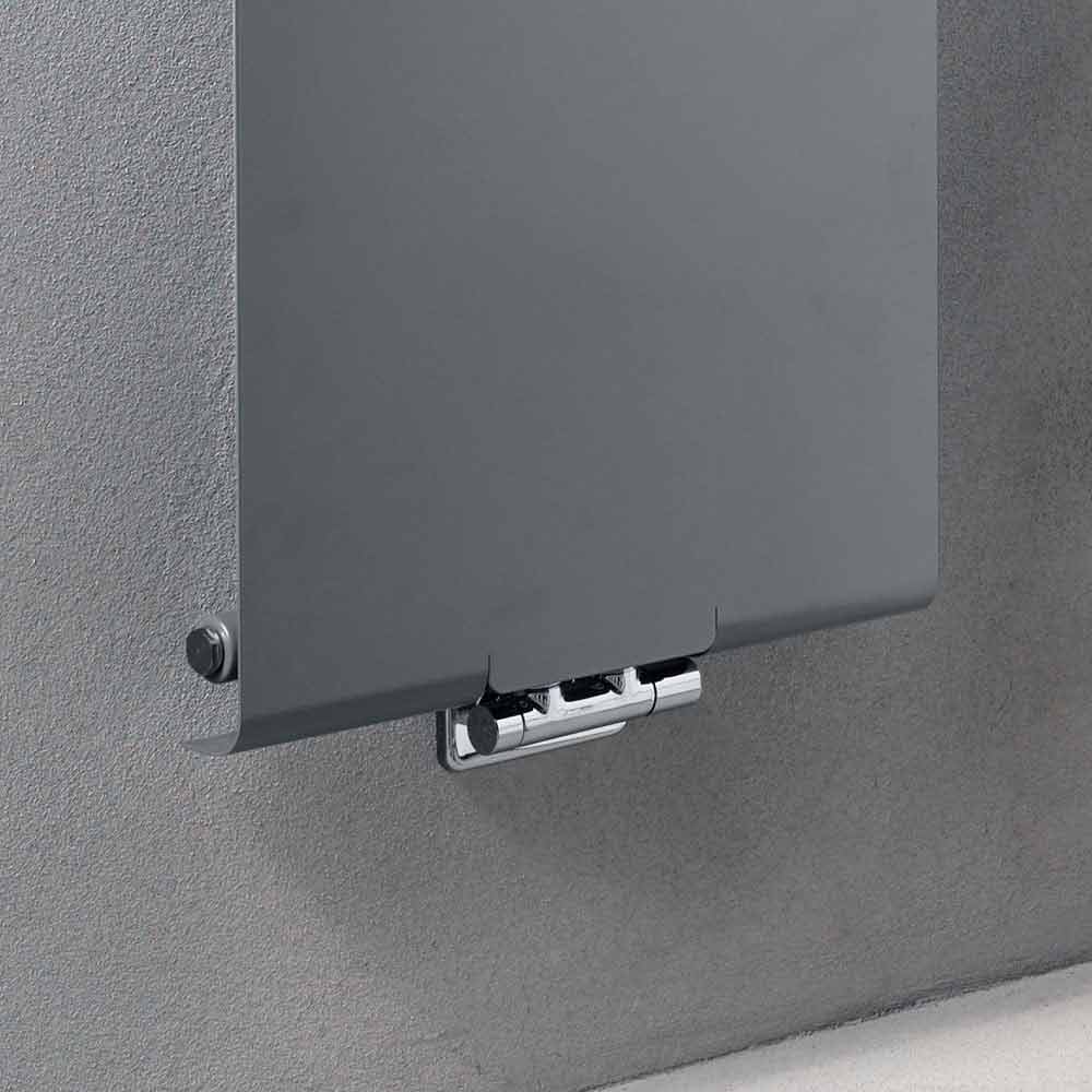 Diese hydraulische Strahlungsplatte verfügt über ein modernes und minimalistisches Design mit praktischen und eleganten integrierten Regalen mit Abdeckung und verchromtem Handtuchhalter, der die Kühlerbreite um 4 cm verlängert.