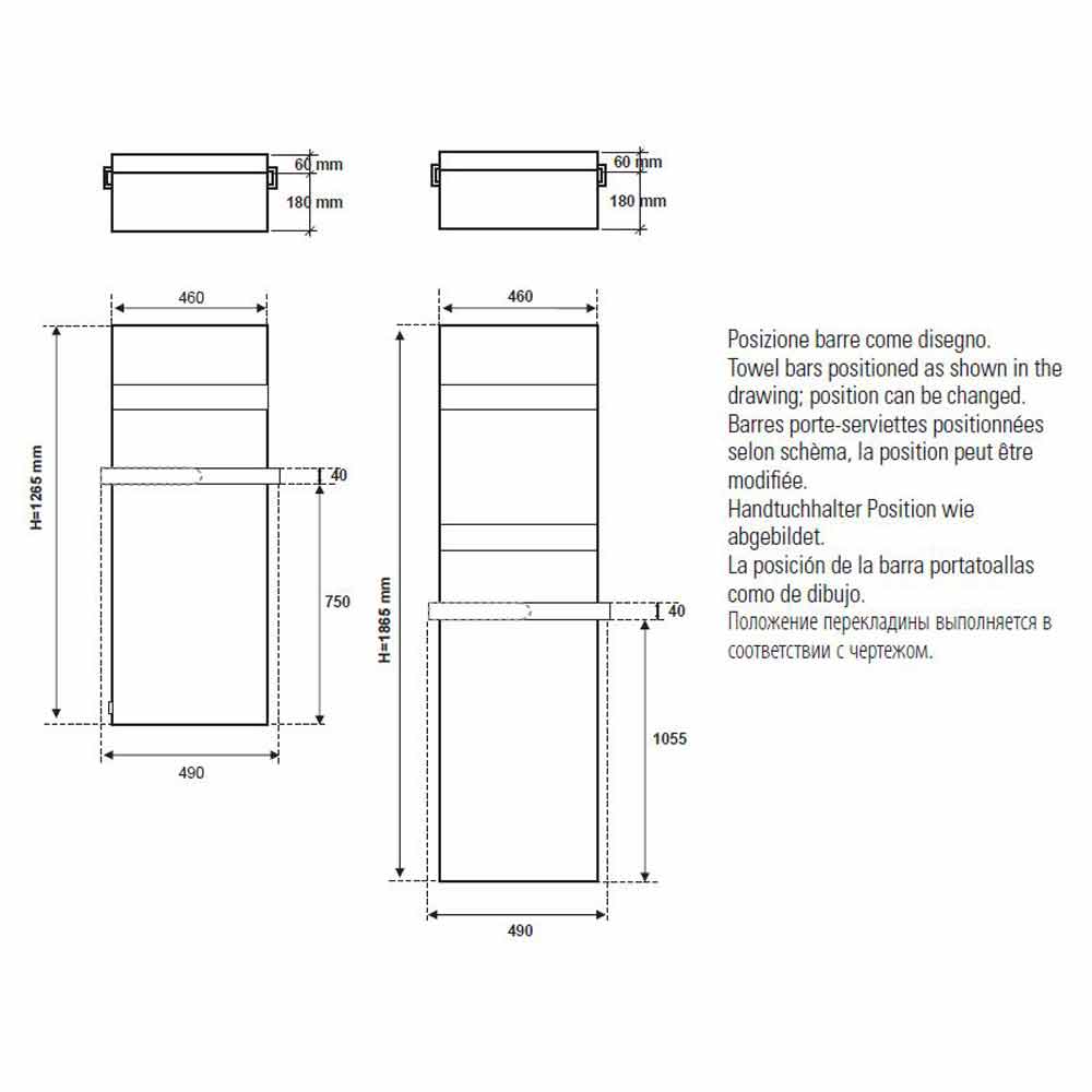 • H 1865 x L 460 x Inter. 1760 mm x Ausbeute w (Δt50 *) 719; Ausbeute w (Δt30 *) 379; Ausgang w (Δt26 *) 316 (2 Regale).