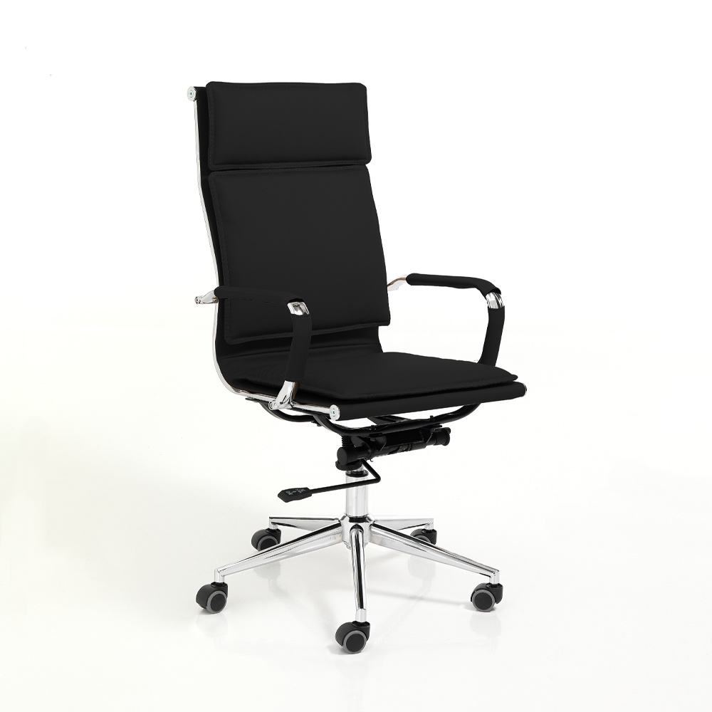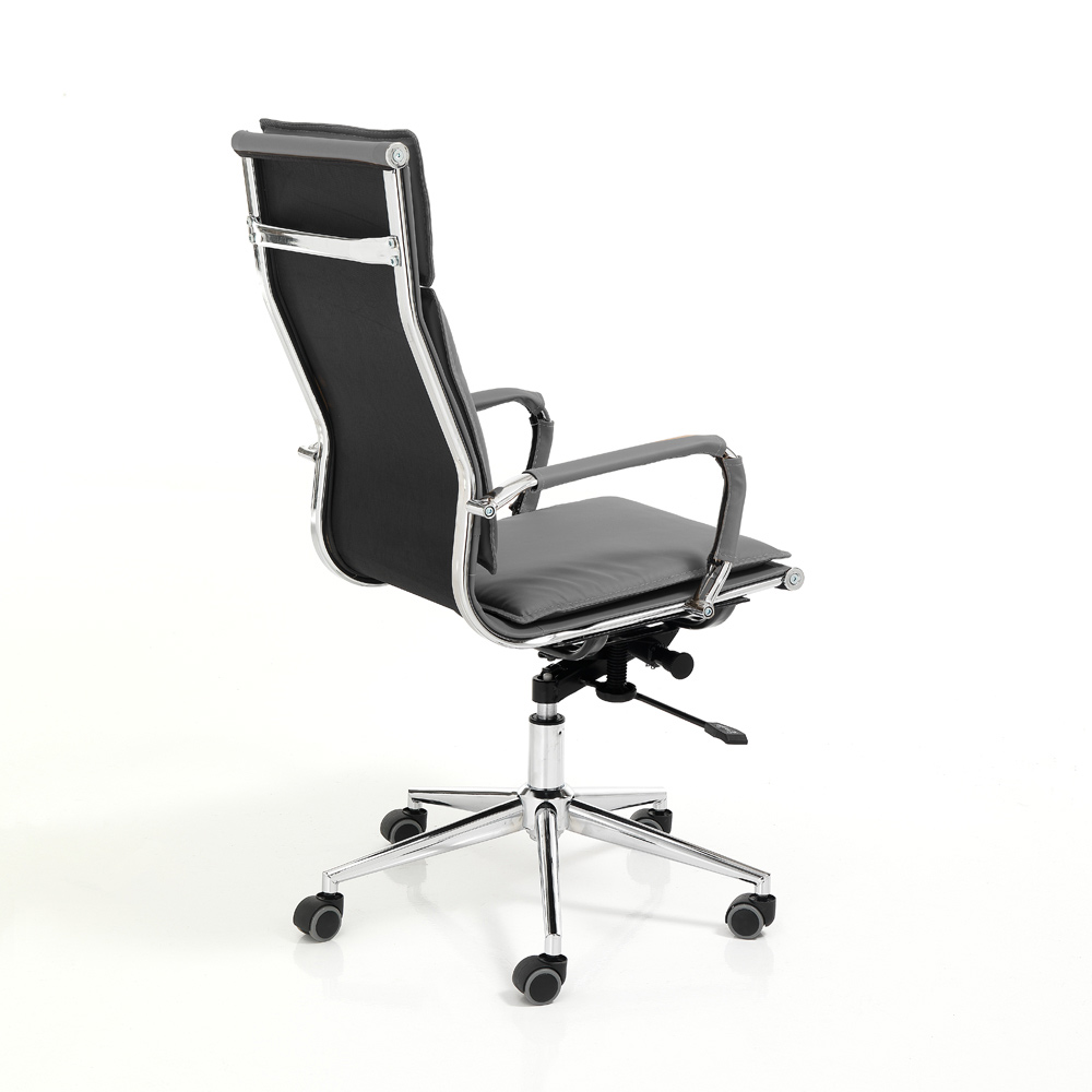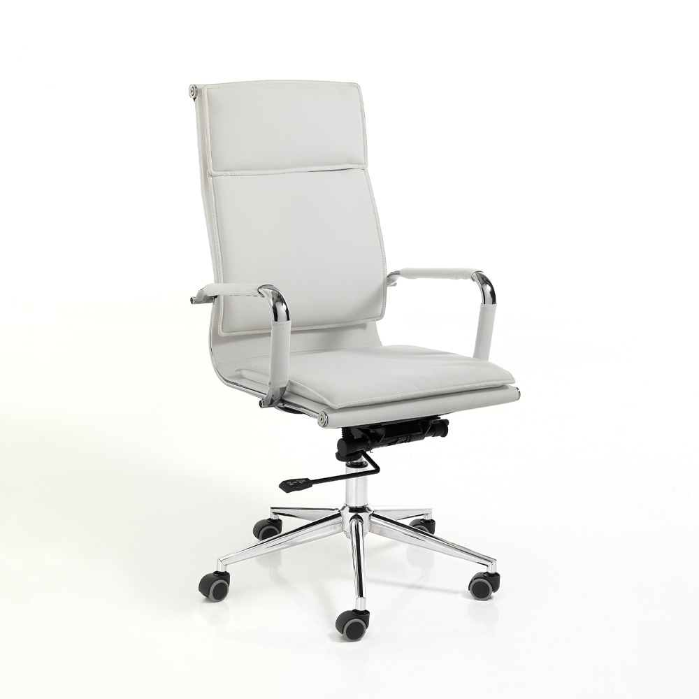 Sessel mit Sitz aus Kunstleder , Sternfuß aus verchromtem Metall , höhenverstellbarer Gasfeder und drehbaren Rädern, komplett . Dieser Artikel garantiert einen weichen und umhüllenden Sitz , einfache Bewegung dank der Räder und die gesamte Qualität von. Es eignet sich perfekt für den Einsatz in Arbeitsbüros , aber auch auf dem heimischen Schreibtisch und verleiht dem Raum eine professionelle und moderne Atmosphäre.