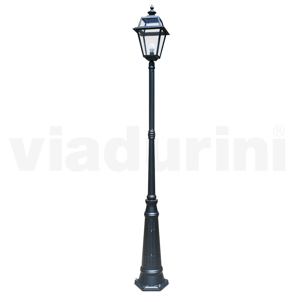 Straßenlaterne für den Außenbereich, 100 % Made in Italy, mit Struktur aus Aluminiumdruckguss in Anthrazitgrau und Glasdiffusor . Komplett mit Edelstahlschrauben. Ein Design mit linearen Formen und Merkmalen, die sich durch Wesentlichkeit und Funktionalität auszeichnen, Elemente, die es zu einem Produkt mit ausgeprägter Vielseitigkeit machen. Die perfekte Kombination der angebotenen Oberflächen und Materialien unterstreicht die Eleganz des Produkts und seine Vintage-Seele . Ideal für Außenbereiche wie Gärten, Innenhöfe, Alleen und Gehwege, aber auch für gewerbliche Räume wie Bars und Restaurants.