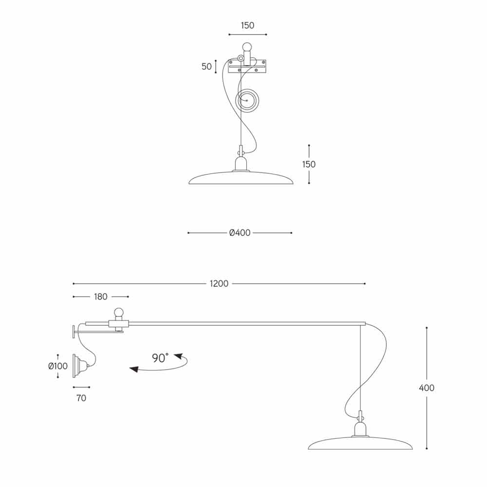 | Lampenmessungen | Lampendurchmesser 40 x H 150 mm; Gesamtlänge mit Arm 1200 mm |