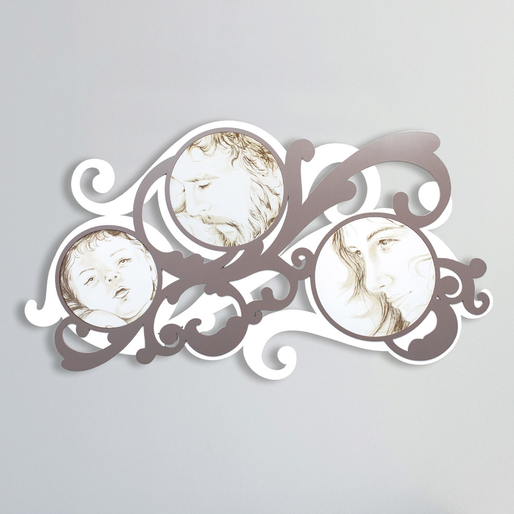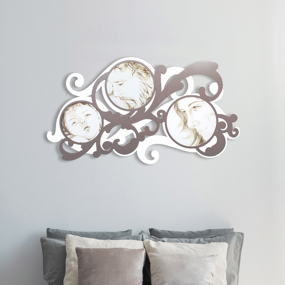 Dekorationspaneel aus mattweiß lackiertem Holz mit Dekorationen in den Farben Kakao oder Grau. Hergestellt in Italien