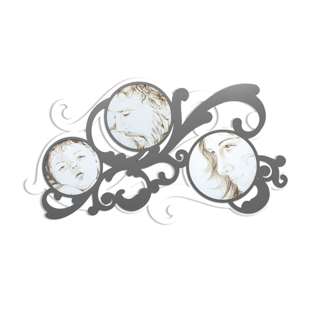 Ein Kopfteil , das die Abstammung dank Lasermarkierung darstellt und die Gesichtszüge zeigt. Mattweiß lackierte Holzplatte mit Lasermarkierung, einer speziellen Technik, die ein Flachrelief auf den Materialien erzeugt. Das originelle handgezeichnete Design in Kombination mit der Lasertechnologie erweckt dieses auf mehreren Ebenen gravierte Werk zum Leben.