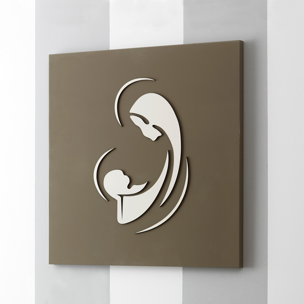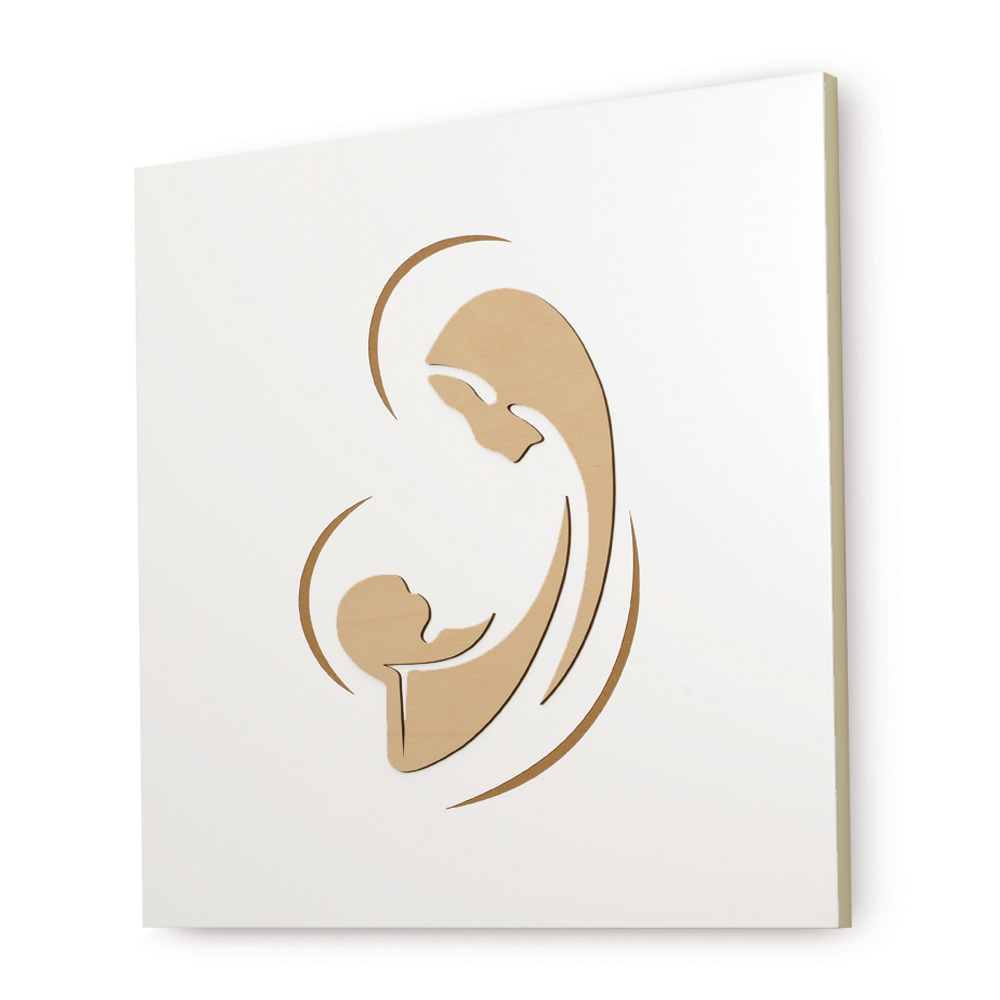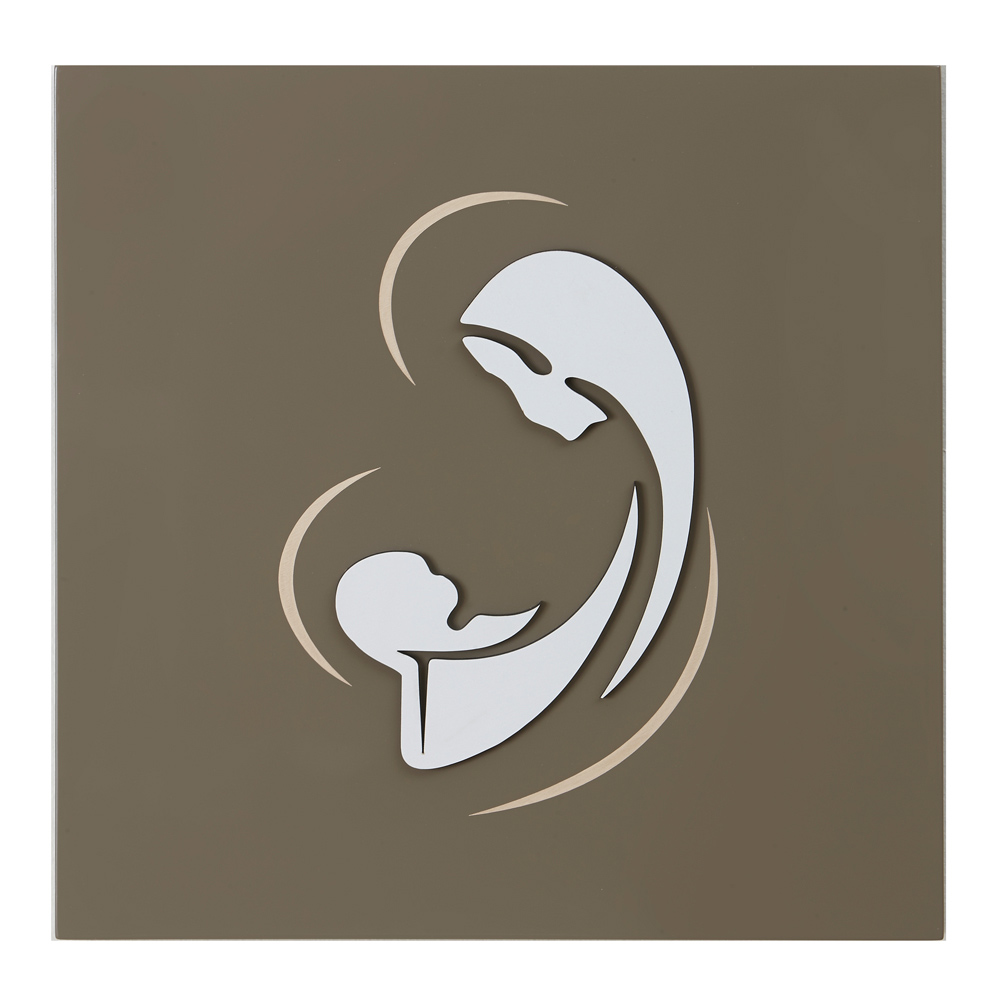 Die ganze Sanftheit der Madonna, die ihr Kind umarmt und ansieht, ist in dieser heiligen und religiösen Darstellung enthalten. Die einfachen und essentiellen Oberflächen unterstreichen diese Emotion und dieses Gefühl und die Auswahl an Farbkombinationen ermöglicht es Ihnen, alle Designanforderungen zu erfüllen.