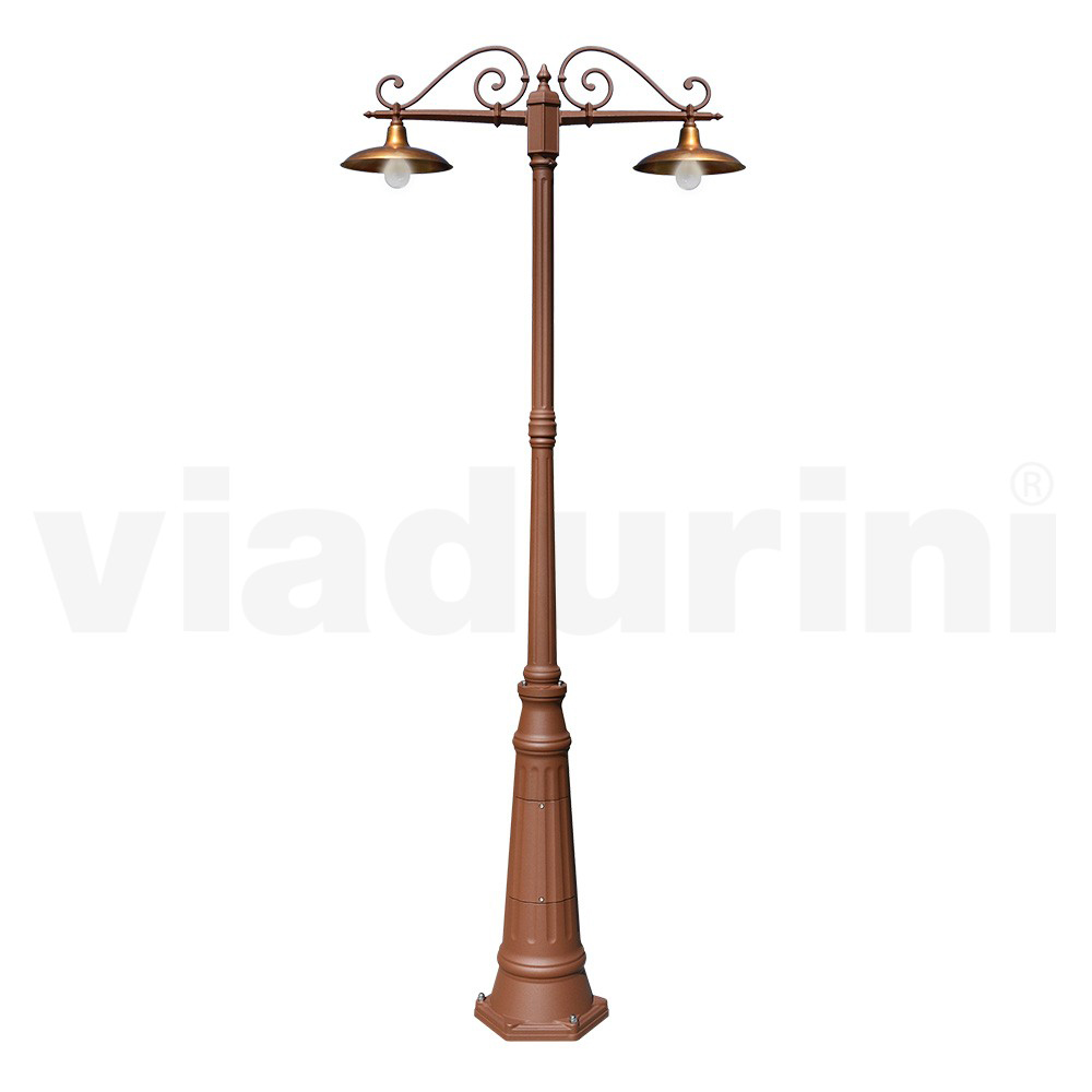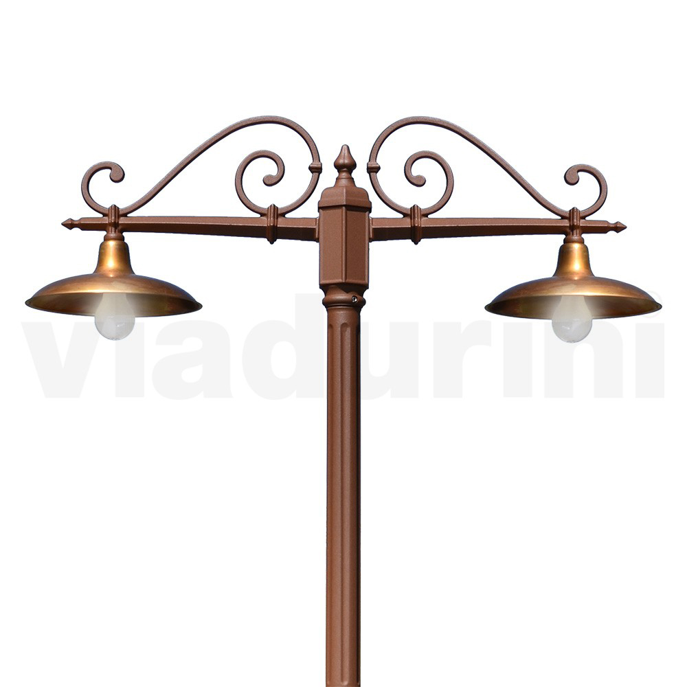 Laternenpfahl mit 2 Lichtern im Vintage-Stil aus Aluminium und Messing, hergestellt in Italien – Adela