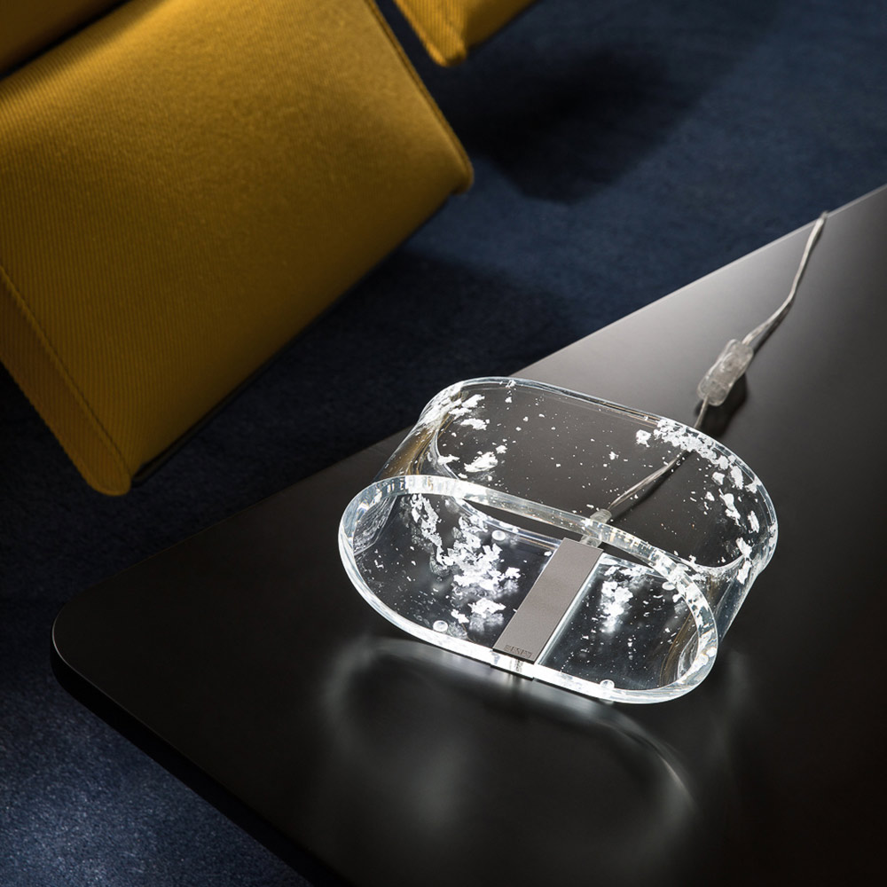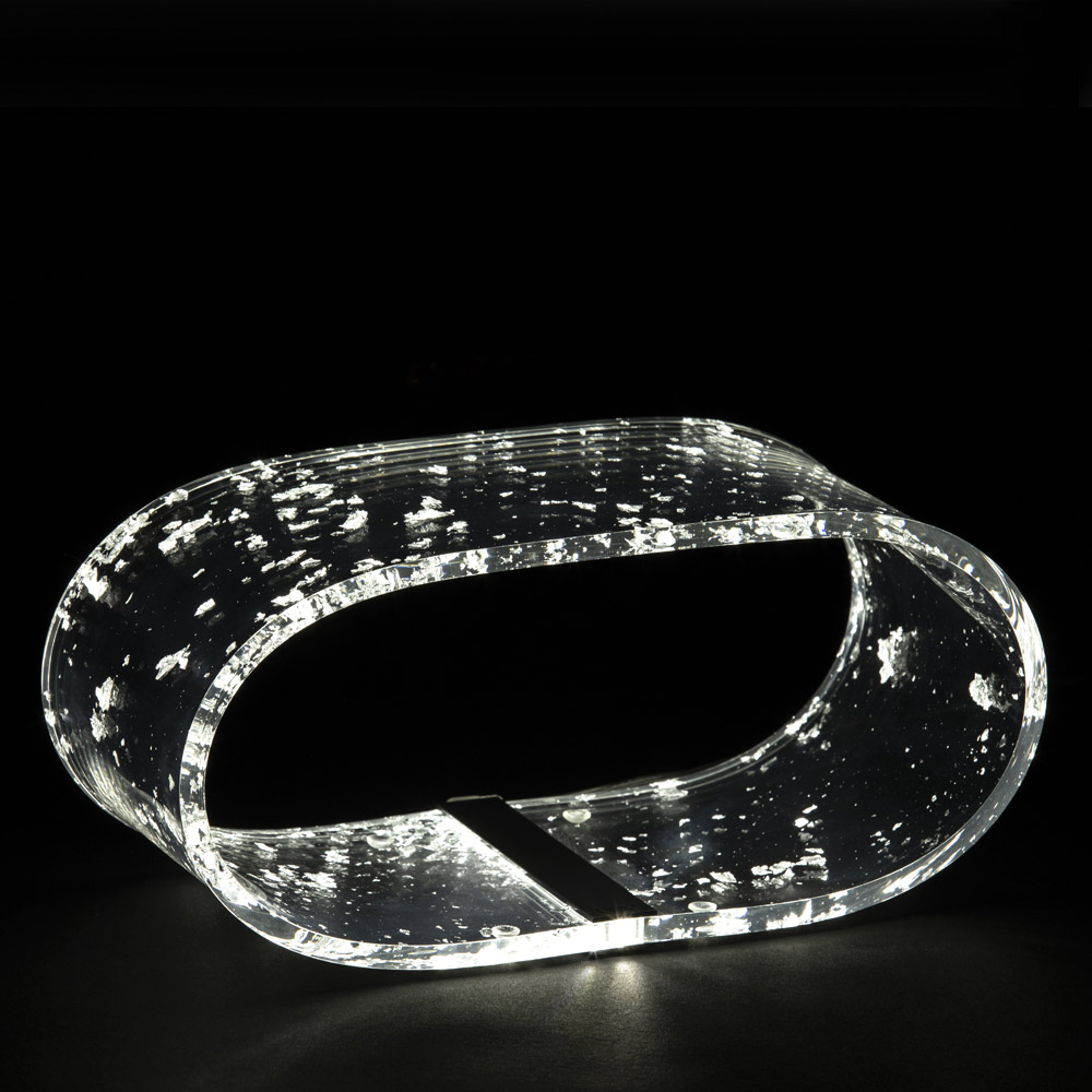 Tischlampe aus Acrylglas und Blattgold, Silber oder Kupfer, 2 Größen made in Italy.