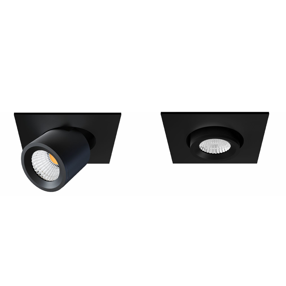 LED-Einbaustrahler aus weißem oder schwarzem Aluminium.