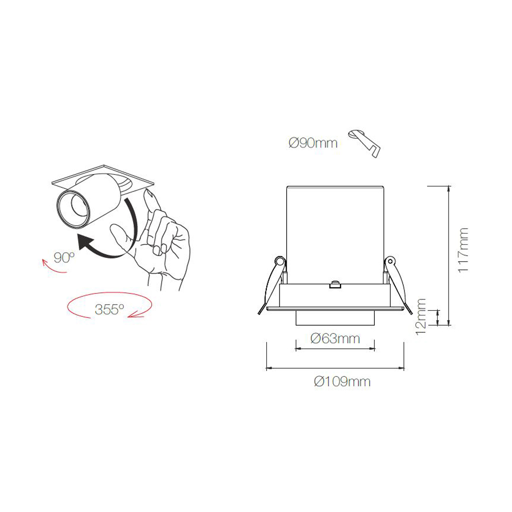 Verstellbarer LED-Einbaustrahler aus weißem oder schwarzem Aluminium.