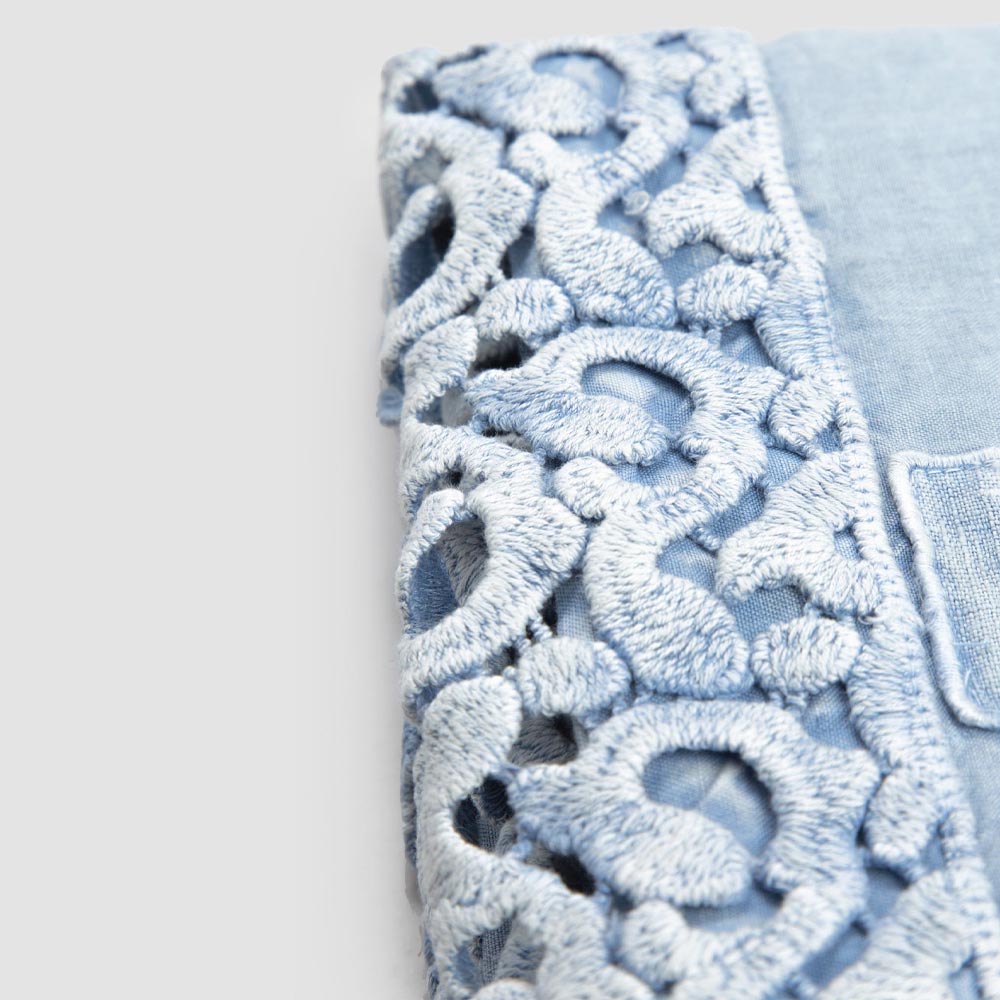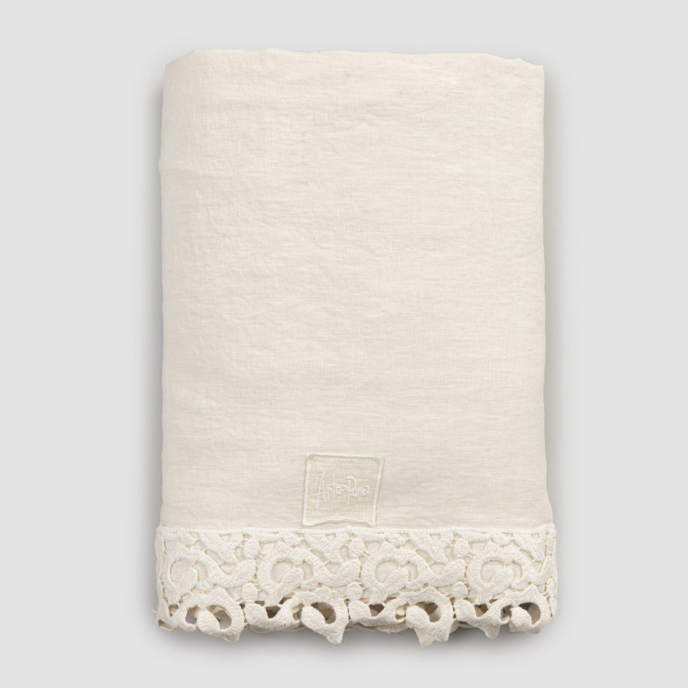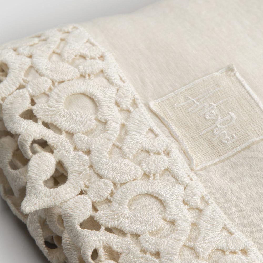 Poema-Spitze und gefalteter Kante verziert. Es wird in Italien hergestellt und besteht aus 100%