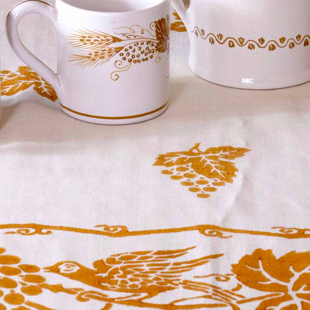 Handgemachtes Frühstücksaccessoire (Tischdecke und 2 TischServietten) aus reinem Leinen mit künstlerischem Aufdruck auf handdekorierten antiken Stoffen, erhältlich in drei Varianten, ein einzigartiges Stück Qualität, hergestellt in Italien.