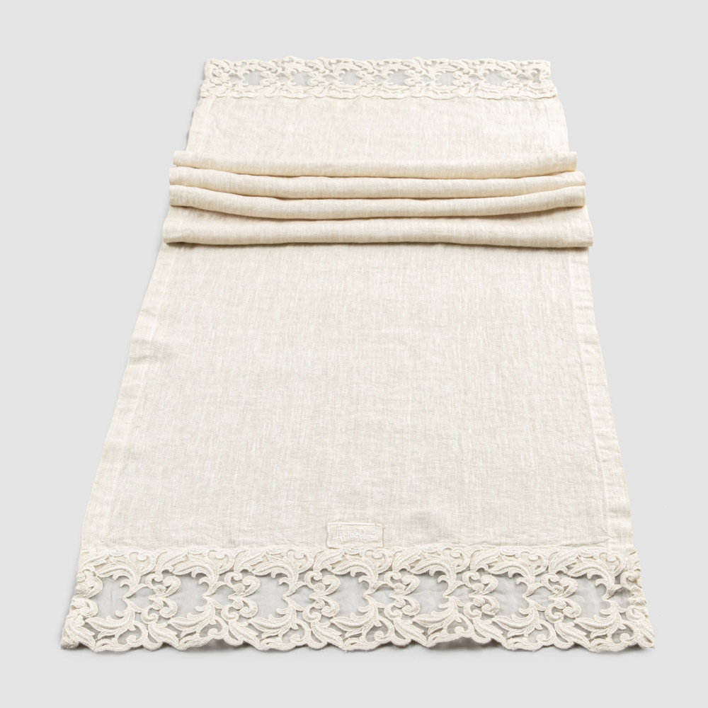 Leinen Tischläufer mit Spitze, Luxus Design in 2 Farben - Farnese