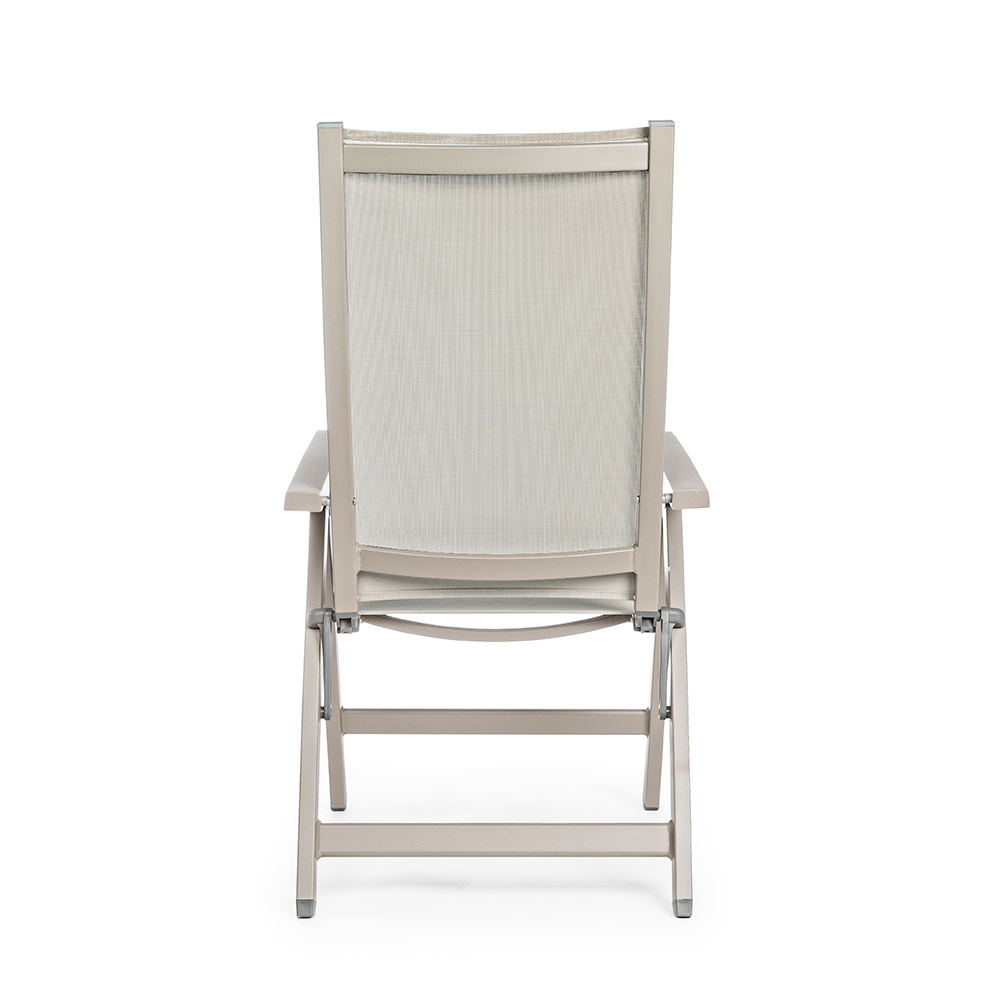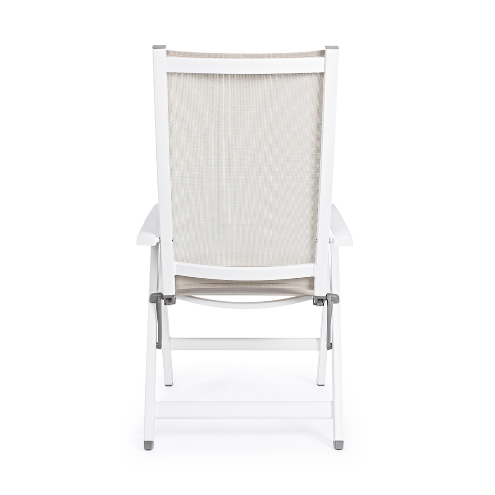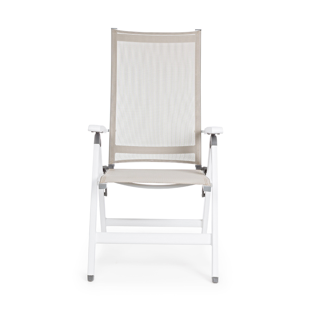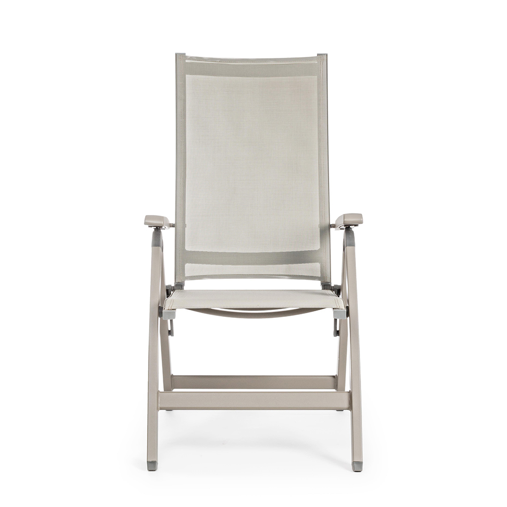 Pulverbeschichtete Aluminiumstruktur (Polyester). Sitz und Rückenlehne mit 1x1 Phifer Textilene bezogen. Rückenlehne (5 Positionen). Falten.