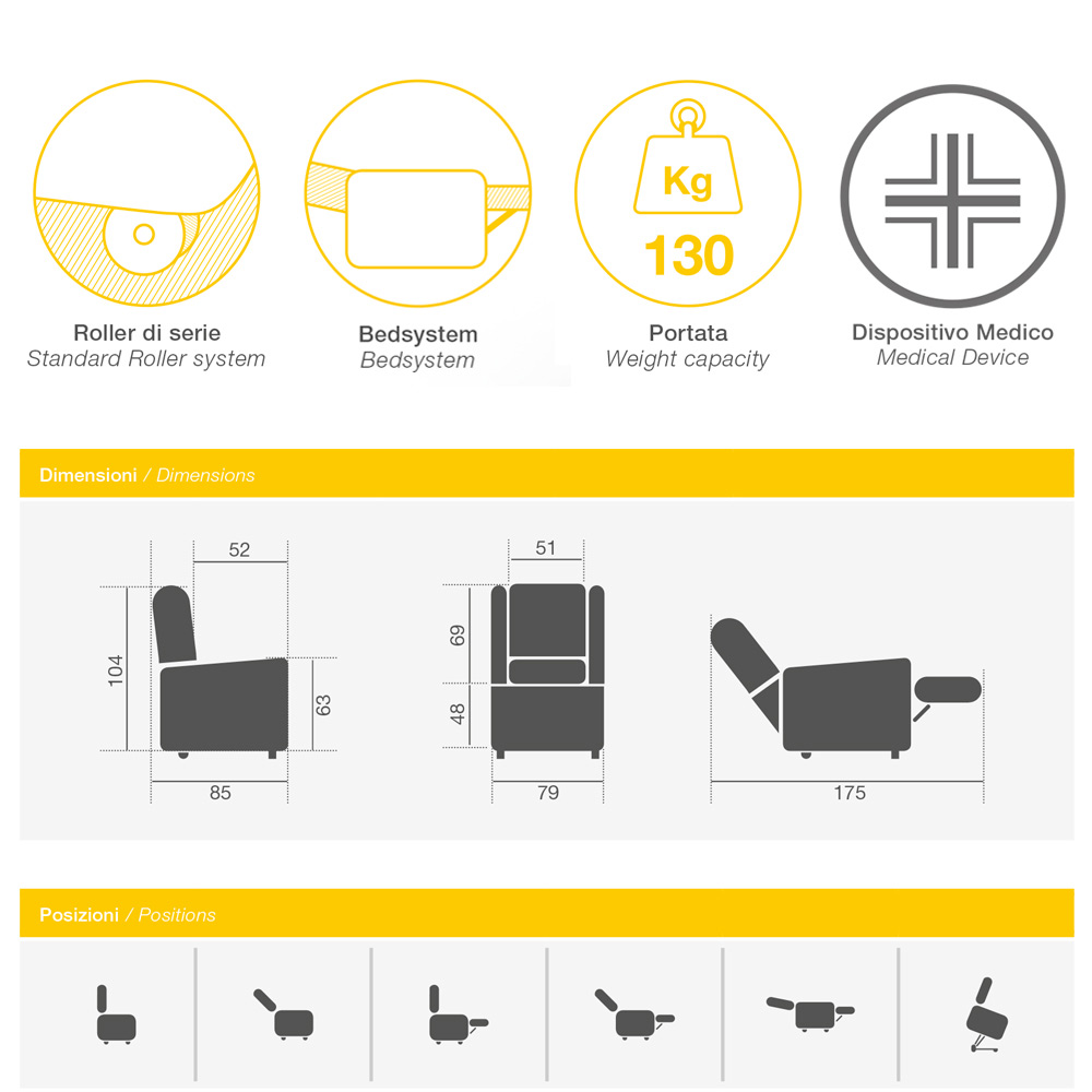 Sessel mit 2 Motoren mit unabhängiger Bewegung der Fußstütze und Rückenlehne , mit folgenden Funktionen: