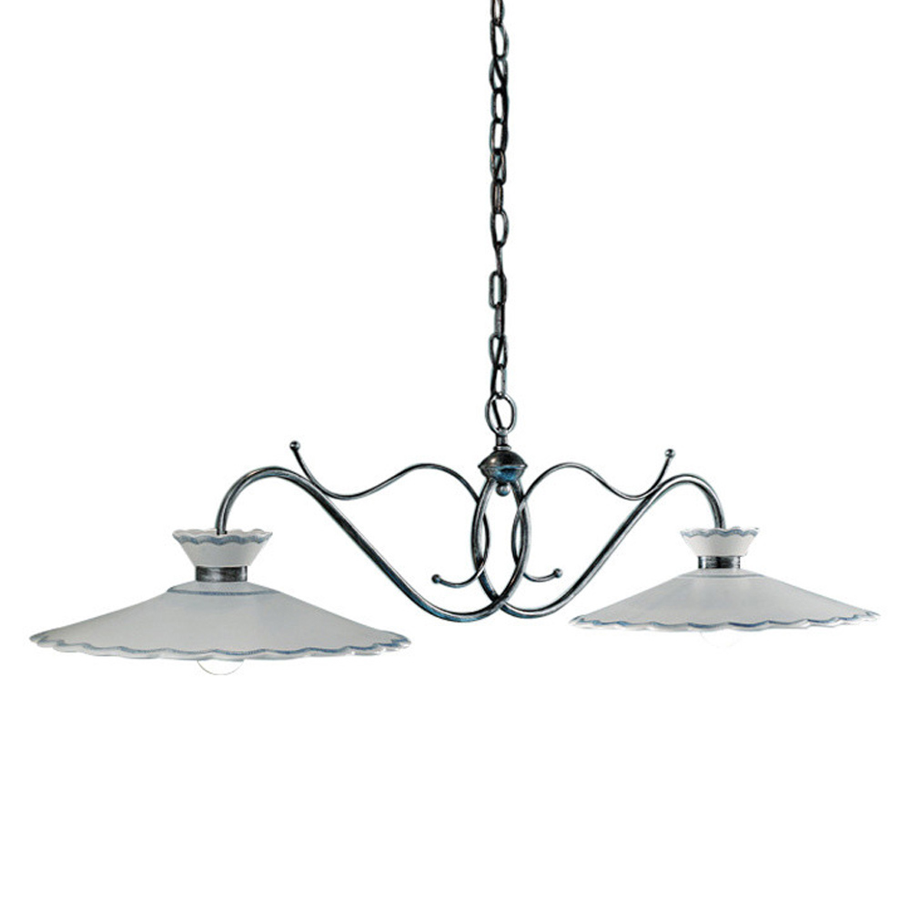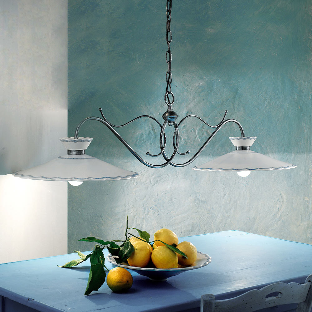 Handgefertigte 2-Licht-Hängelampe aus Metall und Keramik mit Stickereieffekt, 2 Größen, hergestellt in Italien von Ferroluce.