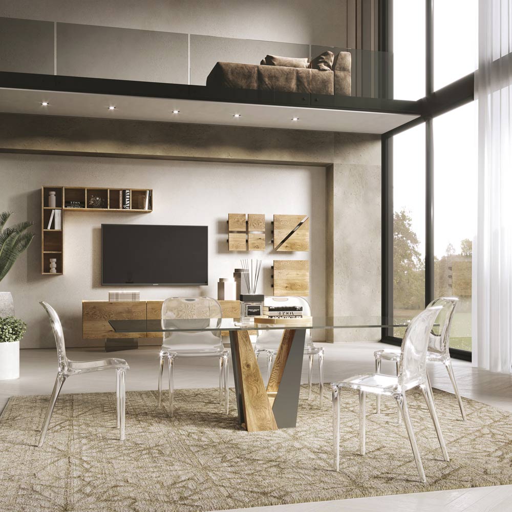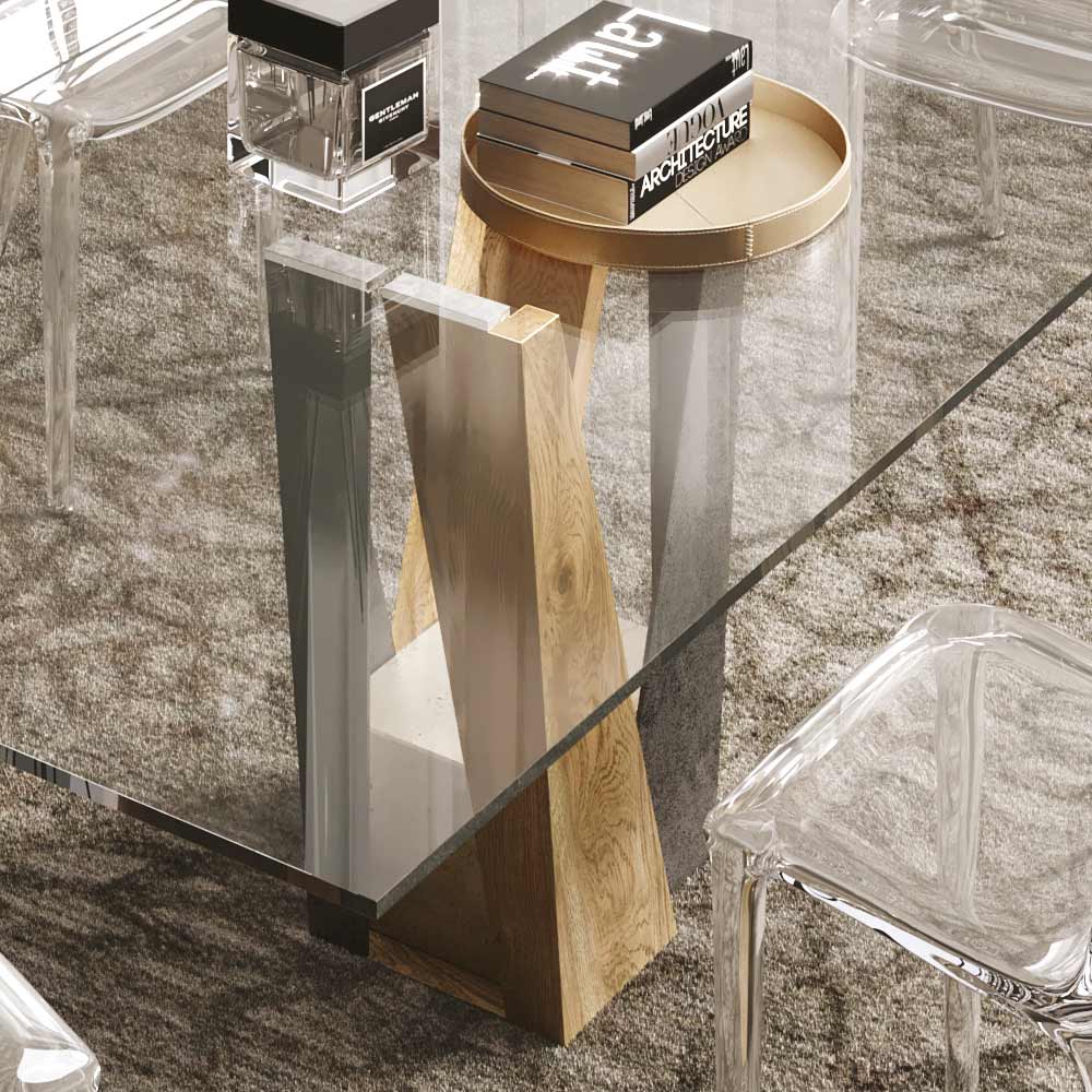 Living Crystal Table mit Holz- und Metallbasis Made in Italy - Dementor