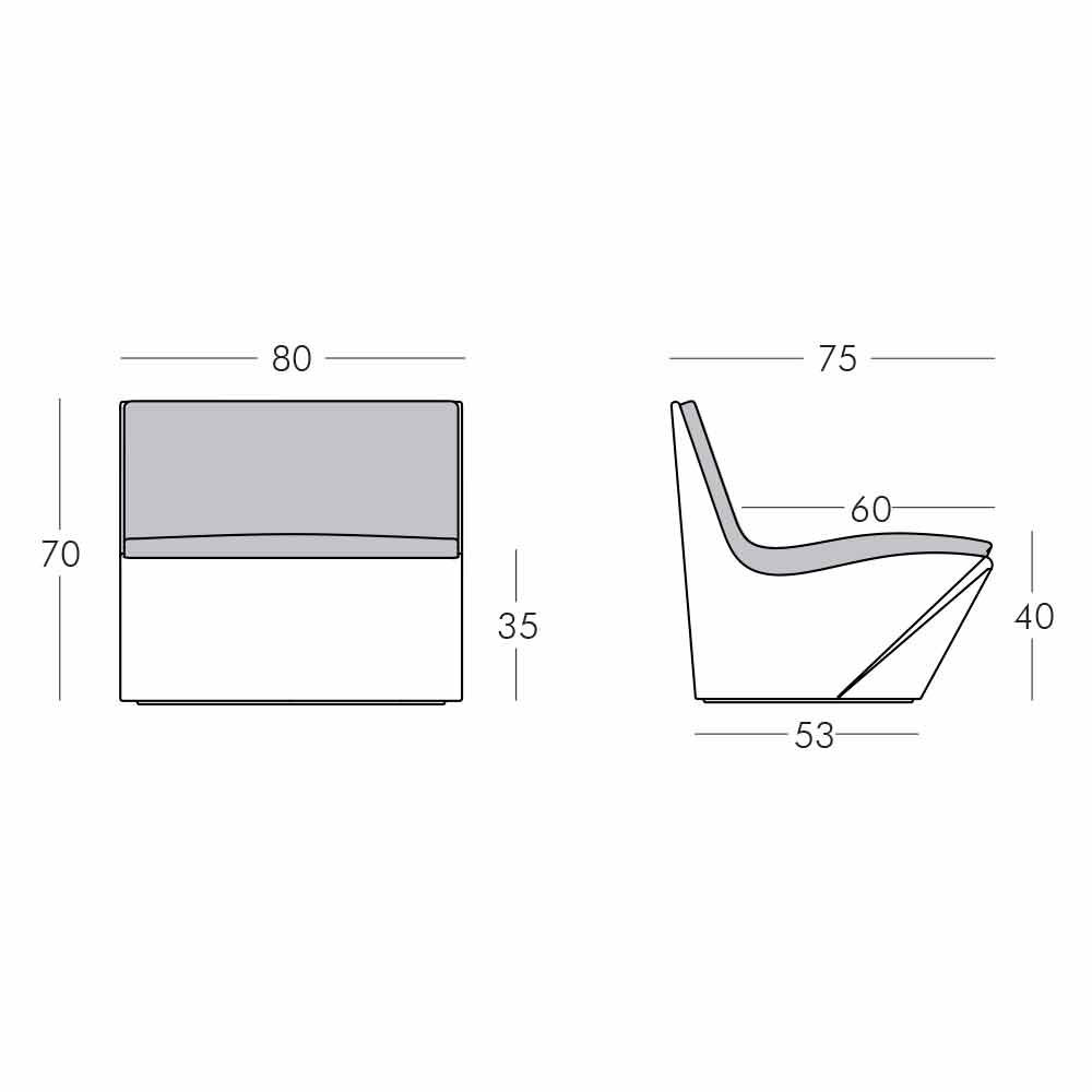 Kami Ichi aus Polyethylen ist in der Standardversion in dreizehn verschiedenen Farben erhältlich. Es passt sich sowohl Innen- als auch Außenmöbeln an und bietet die Möglichkeit, auch Kissen aus Polyurethan in drei verschiedenen Farben zu erwerben: - Anthrazit; - Hellgrau; - Weiss. Kami Ichi kann mit dem Sessel Kami San mit Armlehnen und dem Sofa Kami Yon mit Armlehnen kombiniert werden. Auf Anfrage ist auch die lackierte oder leuchtende Version erhältlich.
