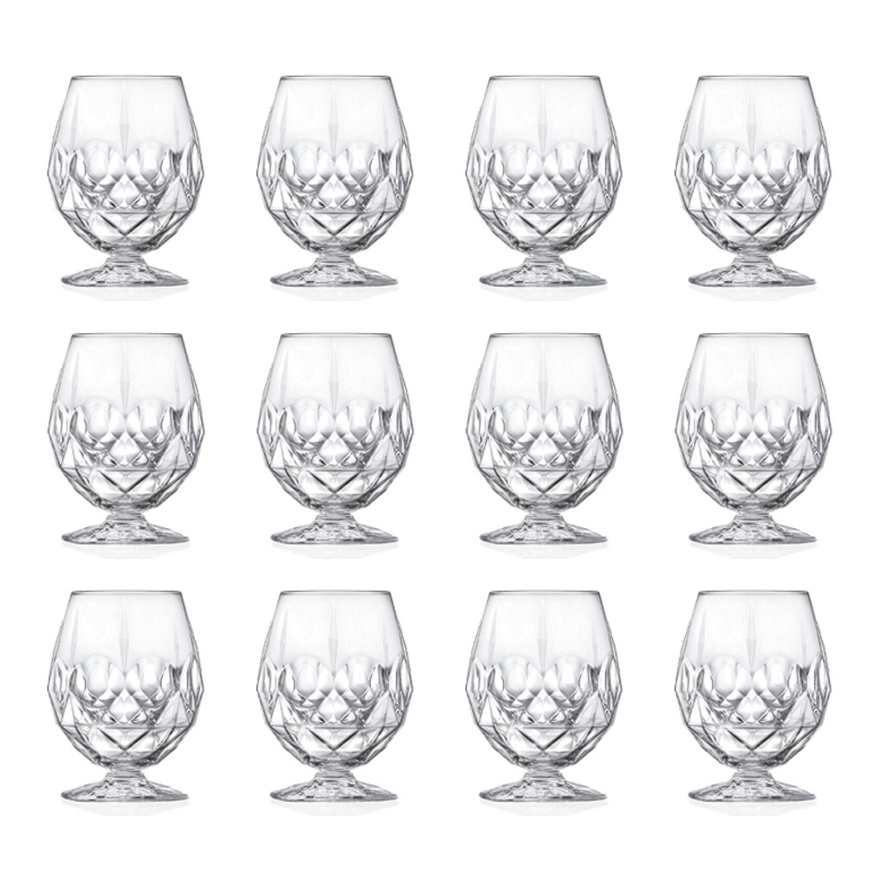 Niedriger Likörkelch aus verziertem ökologischem Kristall, 12-teilig, hergestellt in Italien.