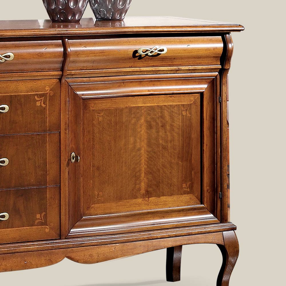 Wohnzimmer-Sideboard im klassischen Stil aus Holz in den Ausführungen Nussbaum oder Weiß. Elegant, aber gleichzeitig praktisch, da es 2 Türen und 6 Schubladen hat. Einzigartig und raffiniert, es wird vollständig in Italien von erfahrenen Handwerksmeistern hergestellt und mit Weisheit und Geschmack für Eleganz vollendet. Die Produktion erfolgt unter Verwendung hochwertiger Materialien und mit der größten Sorgfalt und Professionalität, die die Produkte Made in Italyauszeichnet .