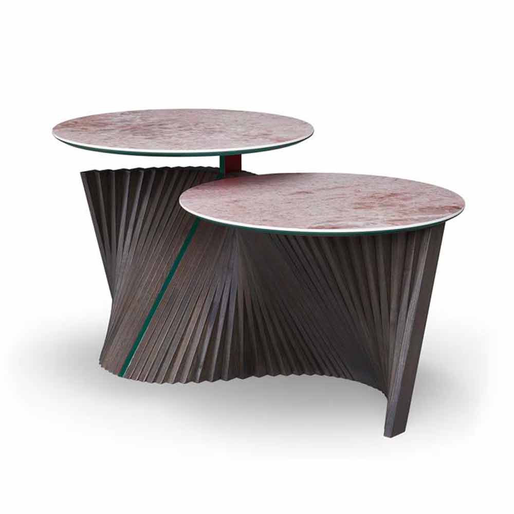 ursprünglich und edel ist. Seine Besonderheit wird durch die wunderbare wellenförmige Basis dargestellt, die dank der Verwendung von poliertem Steinzeug und seiner Oberflächen, die den Tisch mit einem exklusiven und raffinierten Touch bereichern, ein Gefühl der