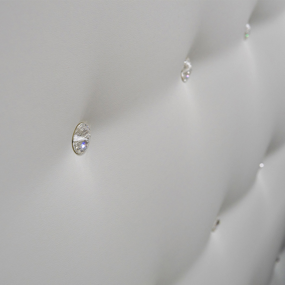 Hochwertiges Doppelbett mit Kommode und Kopfteil gepolstert mit Swarovki; handgefertigt in Italien aus Stoff oder Kunstleder.
