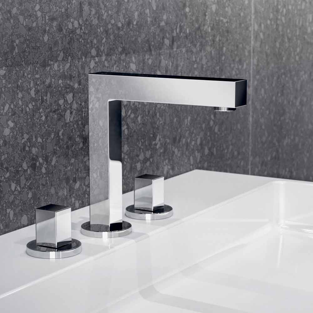 Moderner 3-Loch-Waschtischarmatur aus verchromtem Messing.