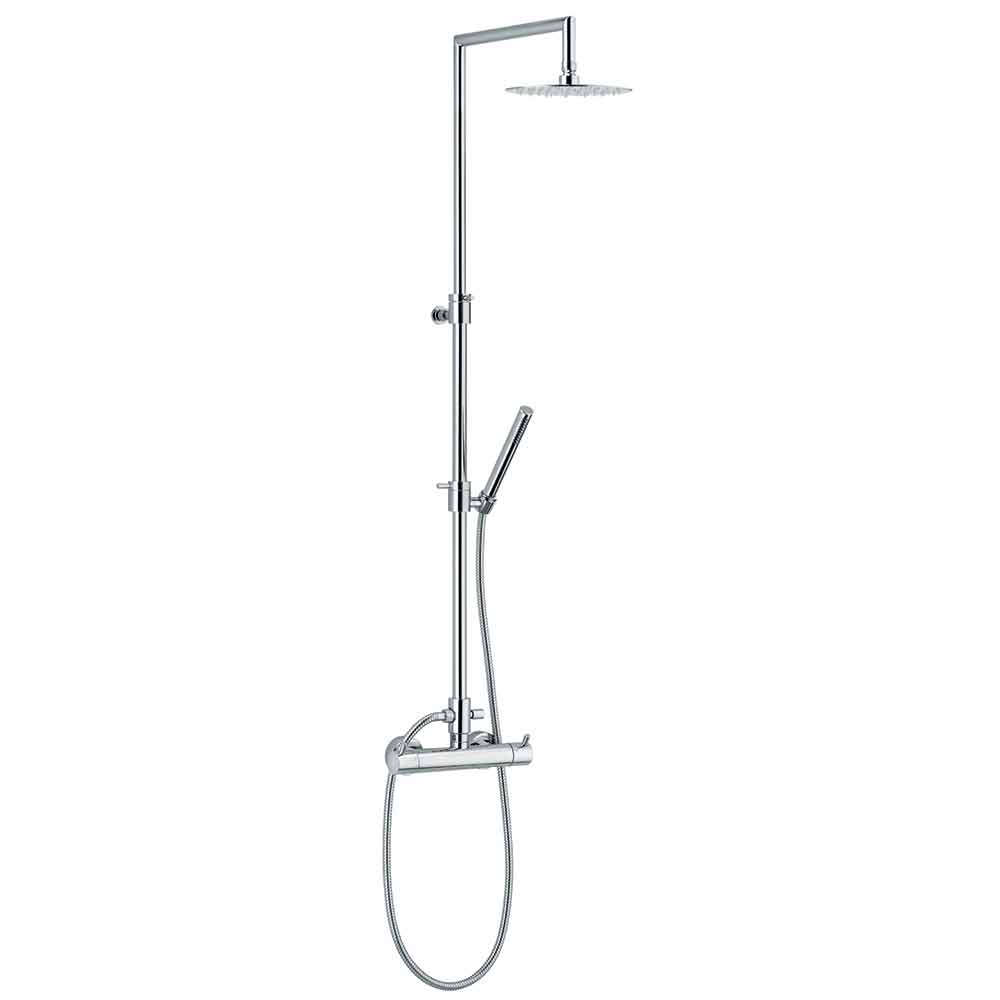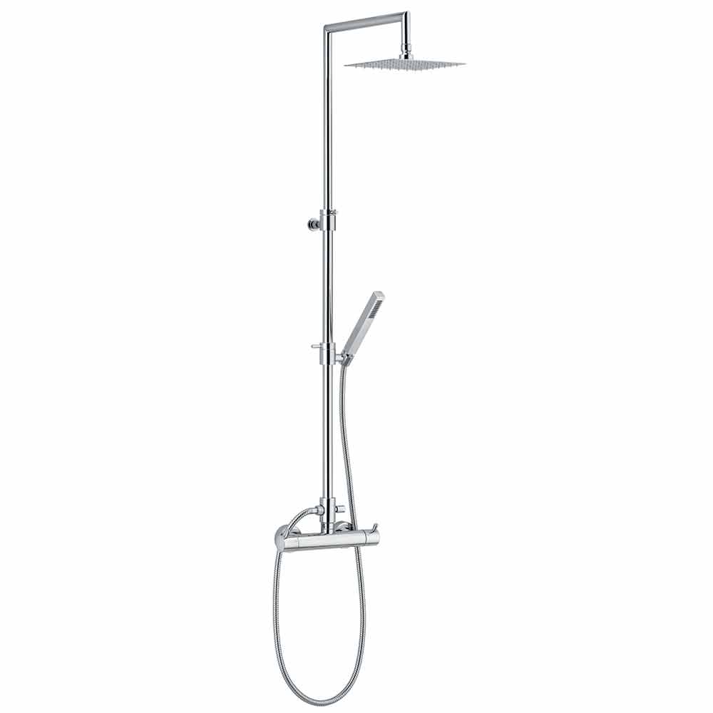 Duschsäule mit Thermostatmischer aus verchromtem Messing mit Zubehör aus Edelstahl und ABS .