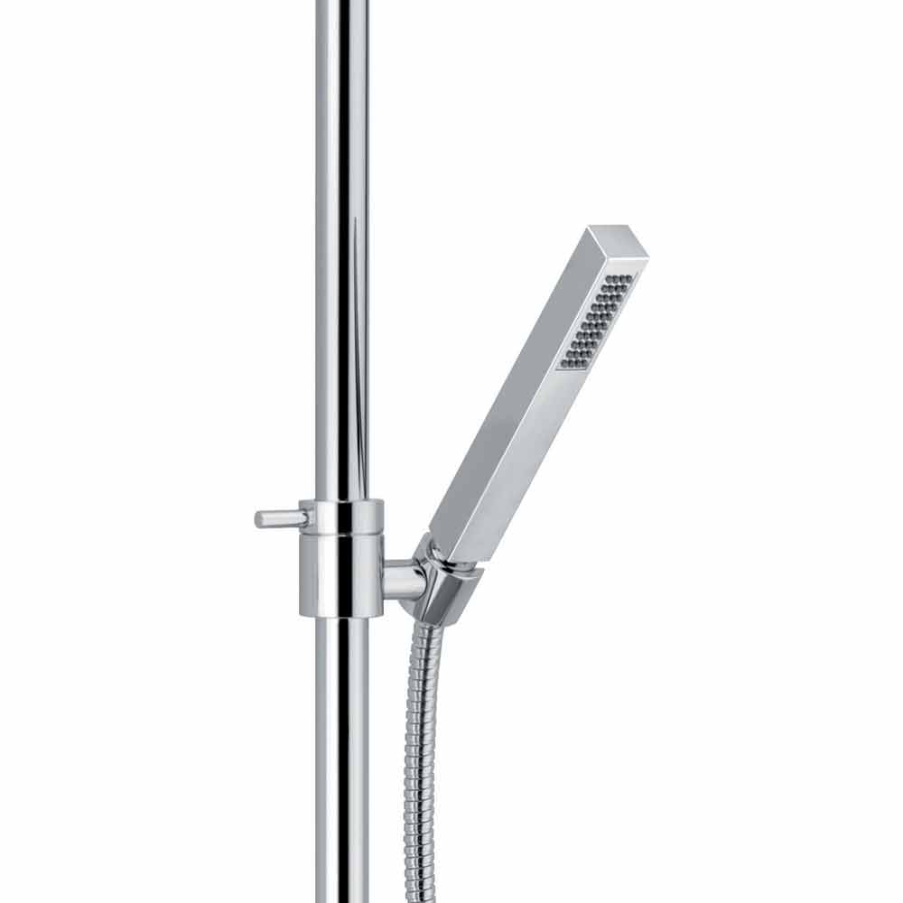 Das Zubehör hingegen ermöglicht eine größere Funktionalität , wodurch eine Duschsäule erhalten wird, die so schön und raffiniert ist, wie sie praktisch und einfach zu bedienen ist. Mit der Schiebestütze können Sie die Höhe der Handbrause einstellen, mit dem 150-cm-Schlauch können Sie sie auf völlig handliche und komfortable Weise verwenden.