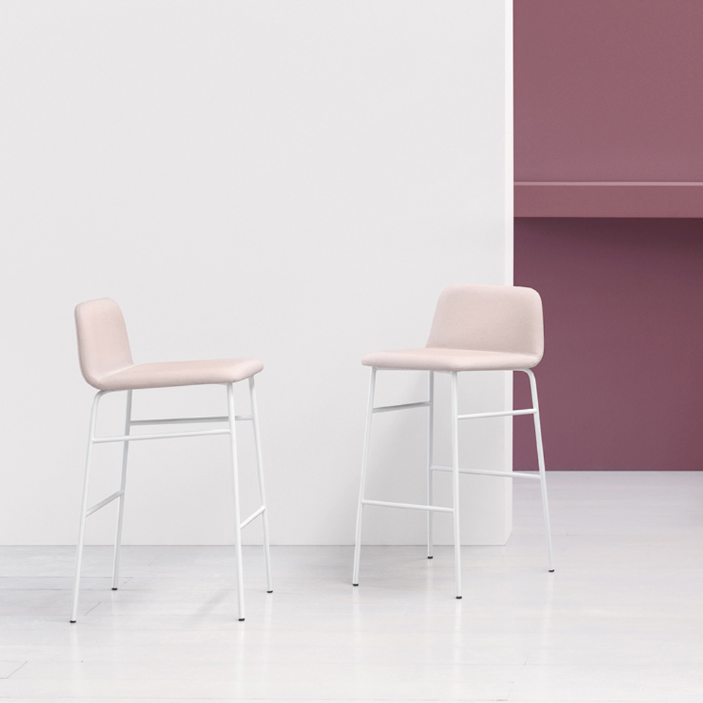 Hoher Hocker aus italienischer Herstellung mit lackiertem Metall und Polsterschale mit Stoff bespannt. Einfache Linien ziehen sich durch die Figur dieser Ergänzung mit einer zeitgenössischen Seele, die für diejenigen entworfen und kreiert wurde, die nach einer minimalen Lösung suchen, ohne auf ein originelles und modernes Design verzichten zu müssen. Was geboren wird, ist ein Sitz, der dank der Verwendung hochwertiger Rohstoffe Funktionalität und Stil in Einklang bringt und es schafft, die Einrichtung des Raumes mit einer einzigartigen Persönlichkeit und einer konkreten Eleganz zu vervollständigen.