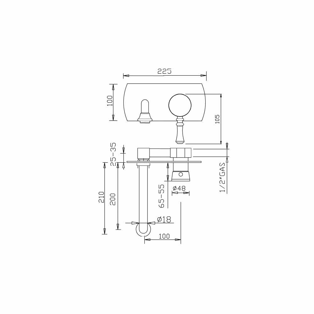 Wandmontierter Waschtischmischer mit Einzelplatte. Hergestellt in Italien.