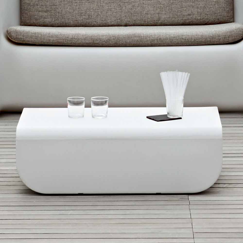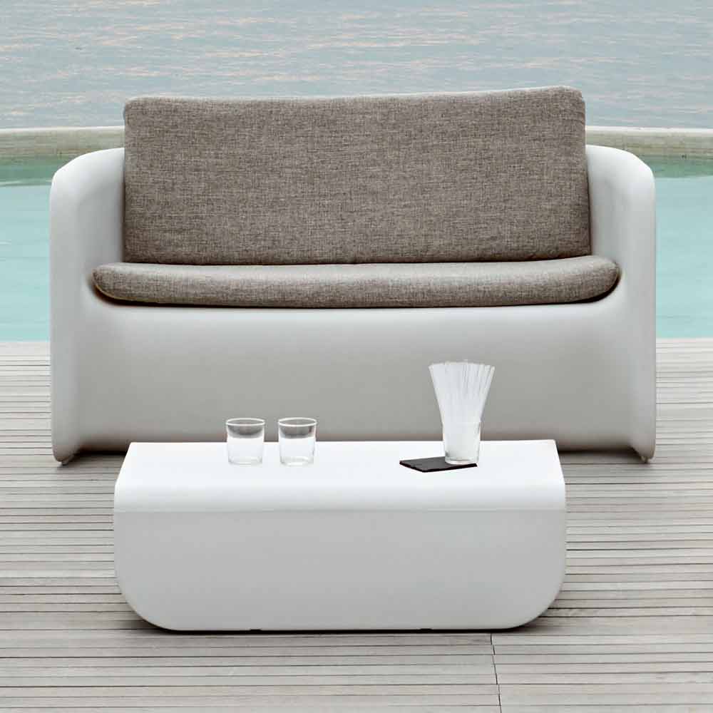 Moderne Gartenlounge, Sofa und Design-Couchtisch aus Polyeasy made in Italy.