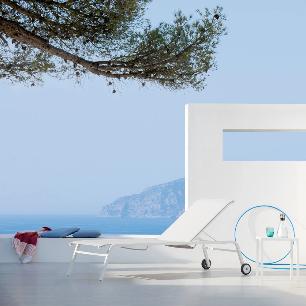 Gartenliege mit modernem und komfortablem Design, komplett in Italien hergestellt, mit verzinkter Stahlstruktur und Texplast- Sitzfläche. Die Verzinkung und die Besonderheit des Texplast-Gewebes machen die Liege beständig gegen die korrosive Wirkung von Witterungseinflüssen wie Salz und Säure des Regens und somit perfekt für die Einrichtung jeder Art von Außenbereich.