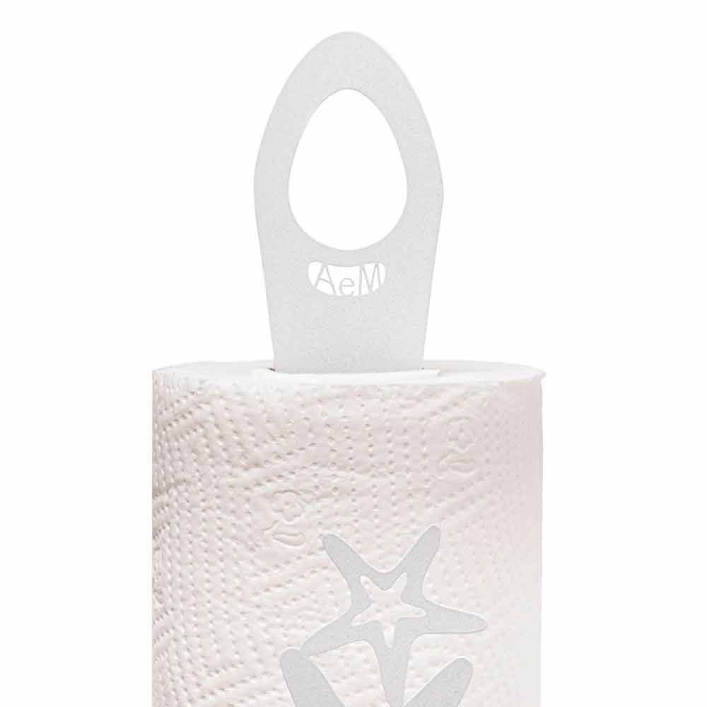 Rollenhalter für moderne Küche aus feinem Eisen handgefertigt in Italien, erhältlich in blau, weiß oder beige.
