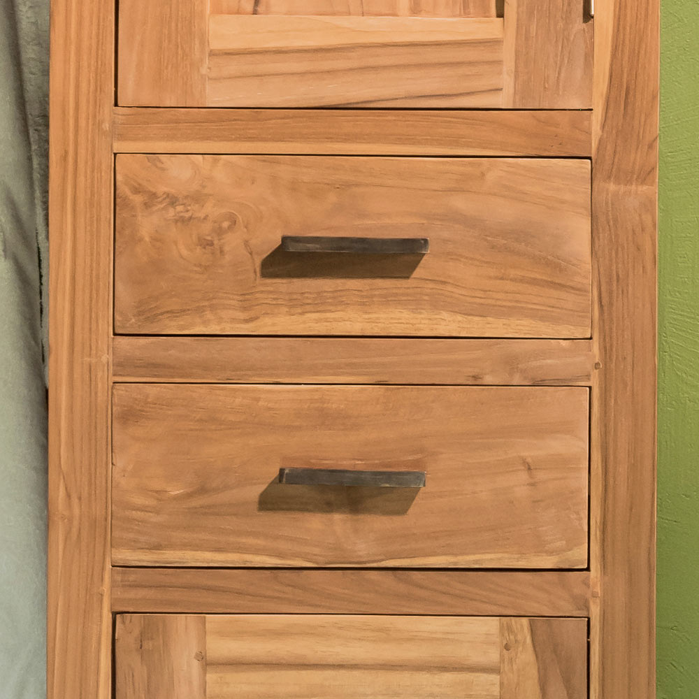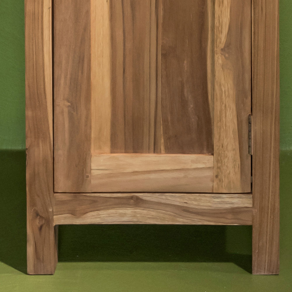 Dieser Badezimmerschrank aus massivem Teakholz ist eine elegante und funktionale Lösung, ideal für die Einrichtung Ihres Badezimmers mit einem natürlichen, raffinierten Stil. Die schlanke Form und die handwerkliche Verarbeitung heben die authentische Maserung des Holzes hervor und verleihen selbst kleinsten Räumen Wärme und Charakter.