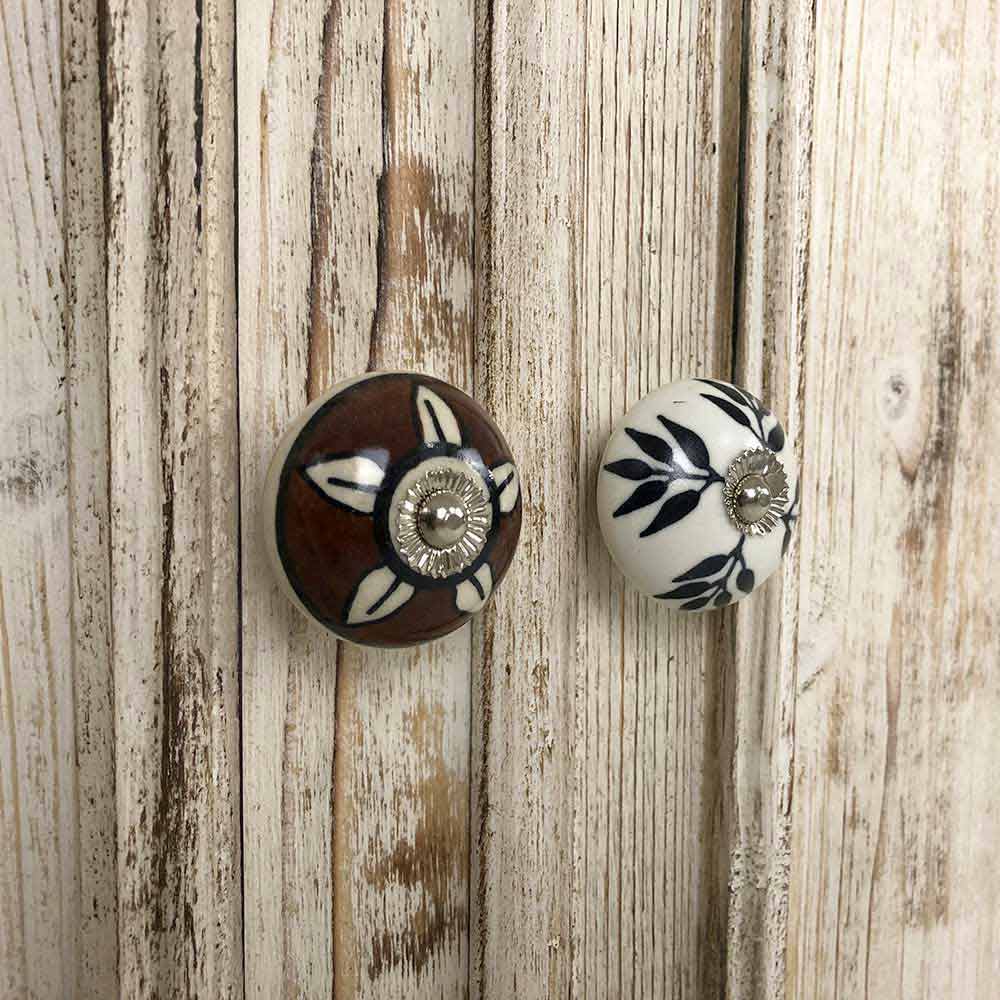 Handgefertigtes Massivholz Sideboard mit Keramikknöpfen, hochwertige Made in Italy.