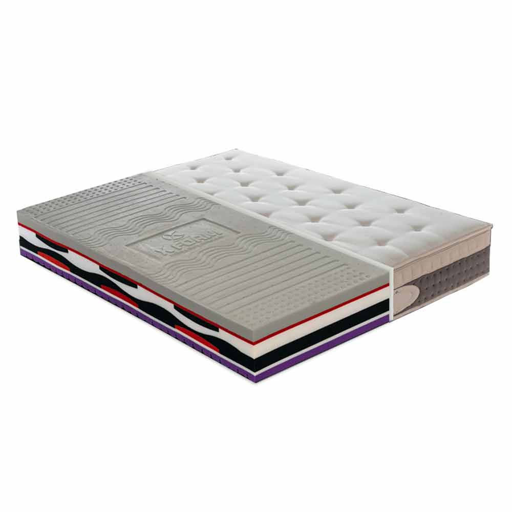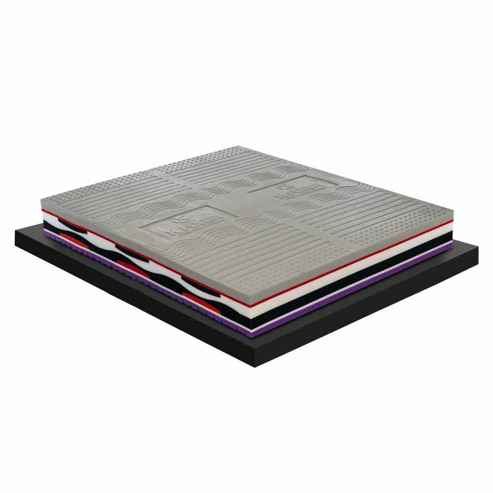 • 5,0 cm graues Memory Xform Dichte 65 kg/m3 aus Schimmel (viskoelastisches Memory mit langsamer Rückführung, geschäumt auf Wasserbasis und mit Zusatz von Silber- und Kohlenstoffionen);