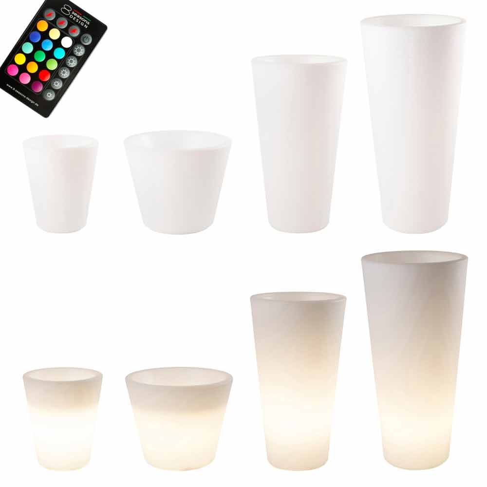 Weiße und moderne Design-Leuchtvase für drinnen oder draußen mit LED oder Solar in verschiedenen Größen.