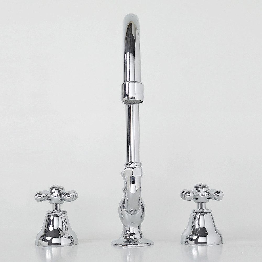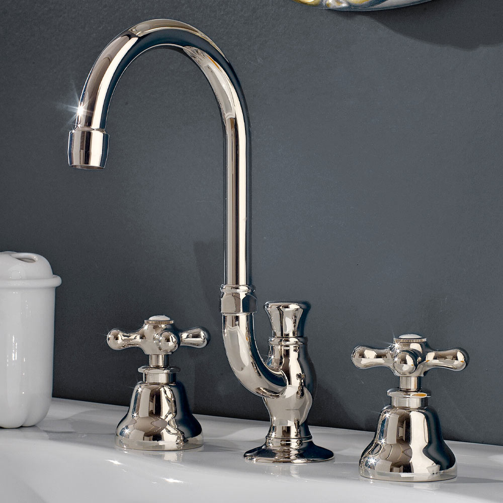 3-Loch-Waschtischarmatur mit hohem Auslauf und Abfluss aus Messing, hohe Qualität made in Italy.